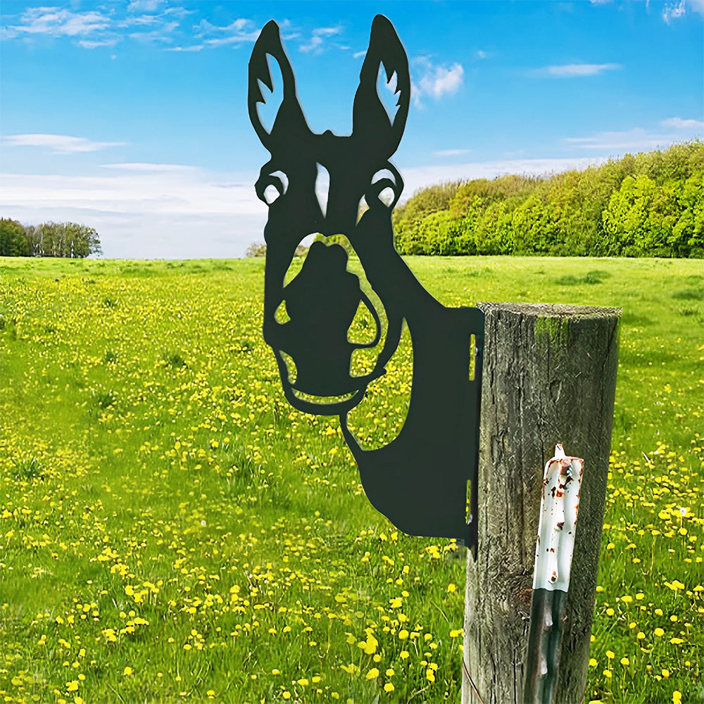 Âne Curieux Plaque Métallique – Décoration de Jardin Extérieur Animale