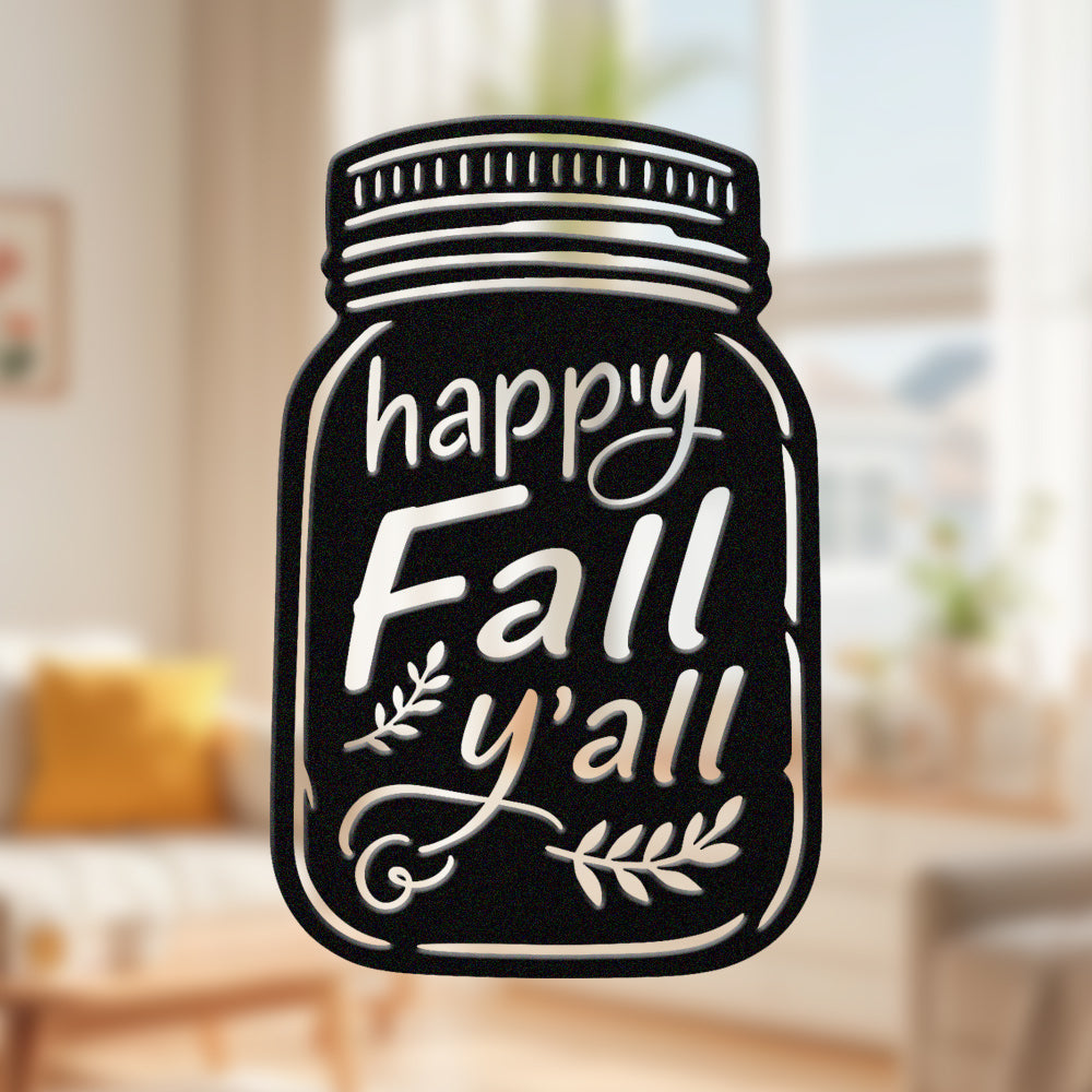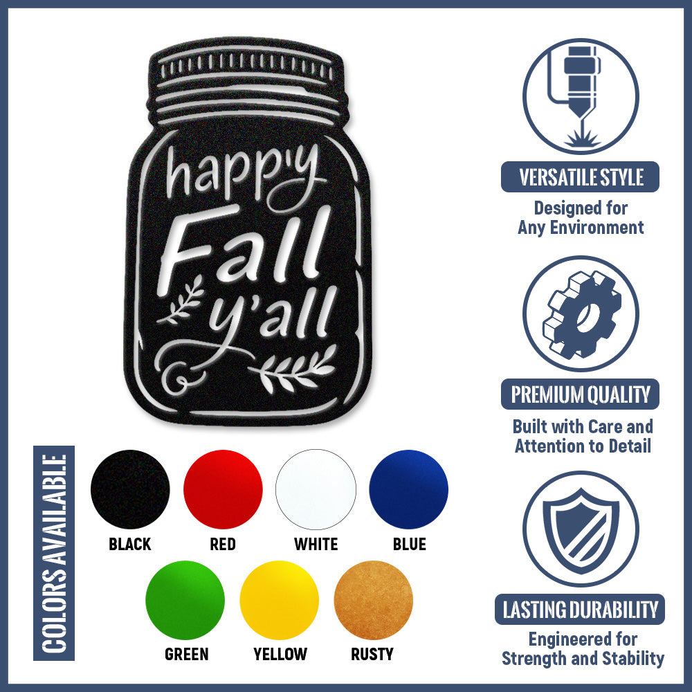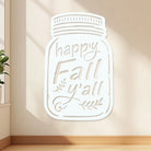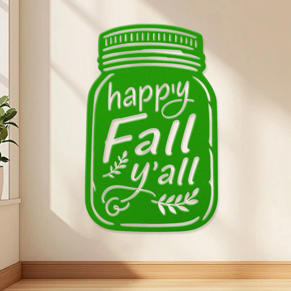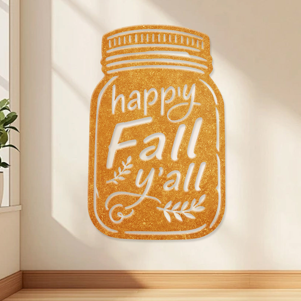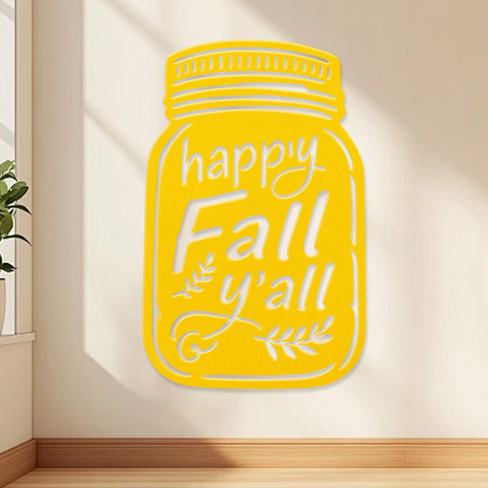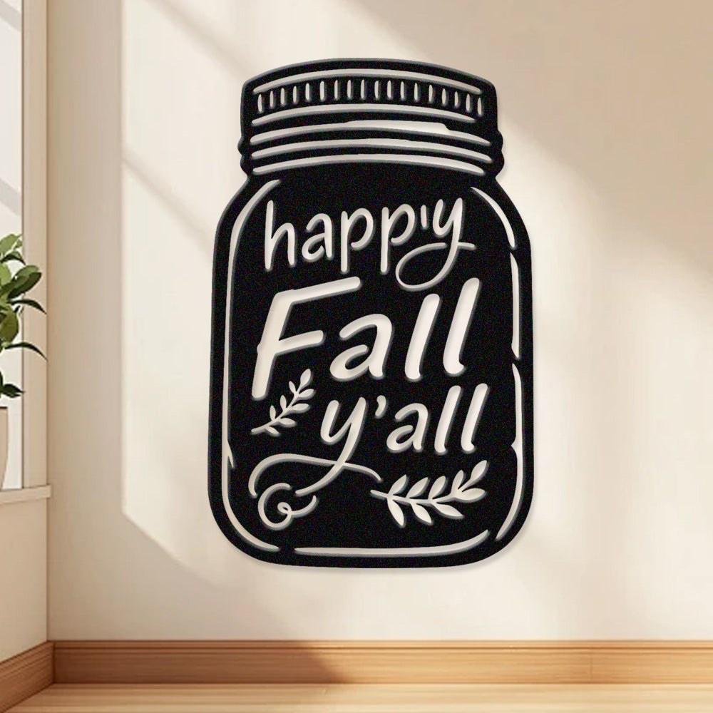 Happy Fall Metal Wall Art - Iron Mason Jar Decor with Fall Leaves