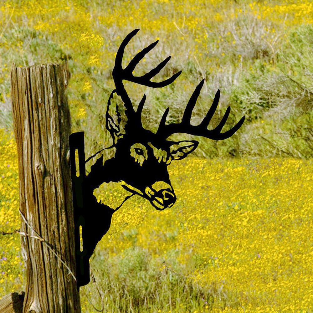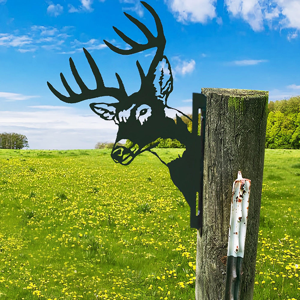 Renne Curieux Plaque Métallique – Décoration de Jardin Extérieur Animale