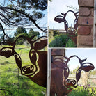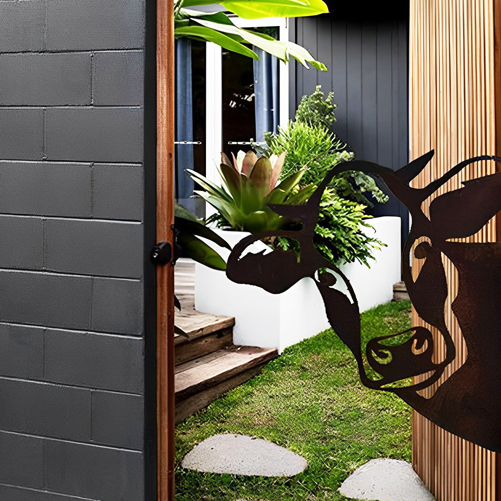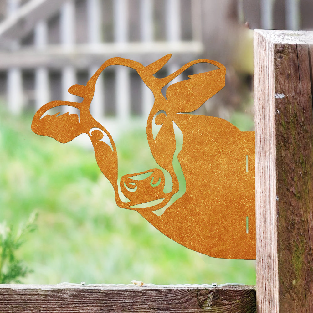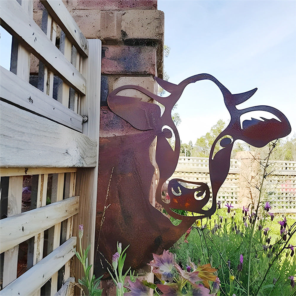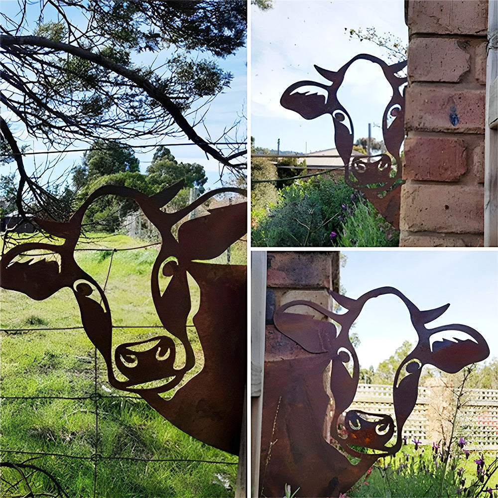 Vache Curieuse Plaque Métallique – Décoration de Jardin Extérieur Animale