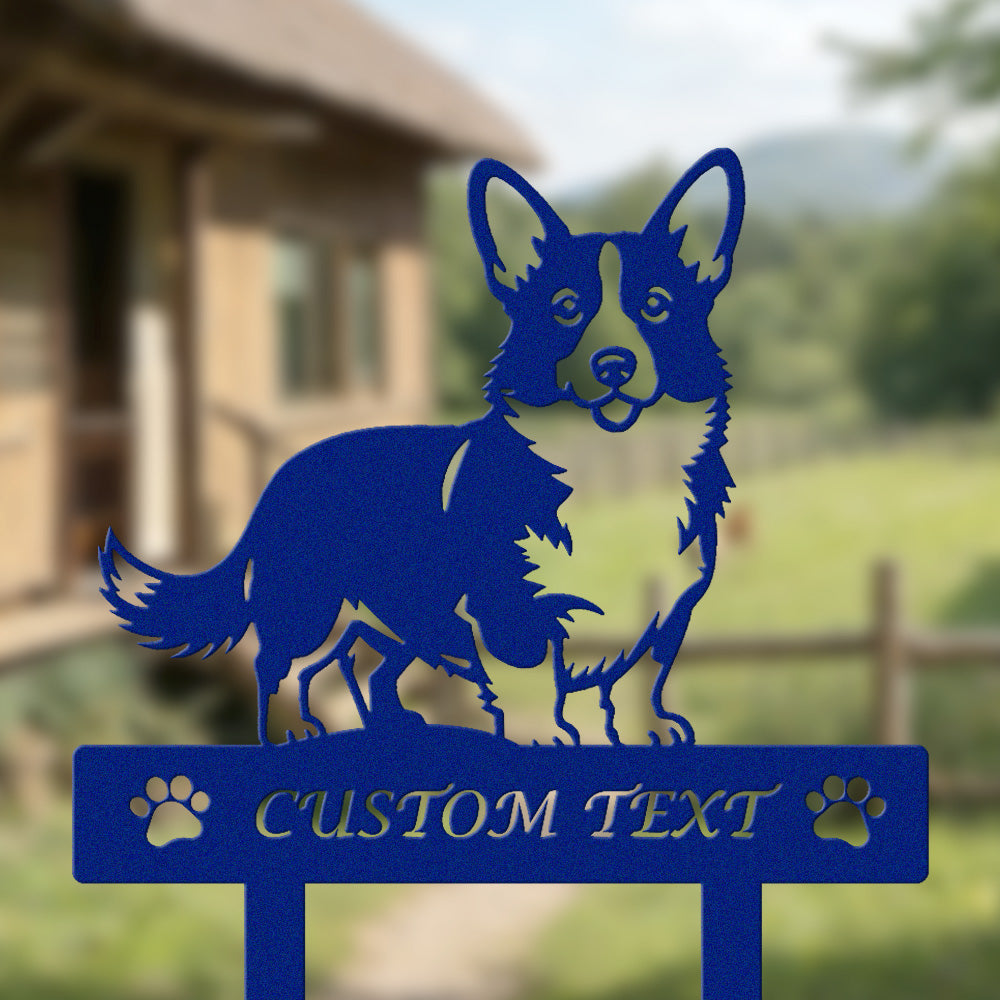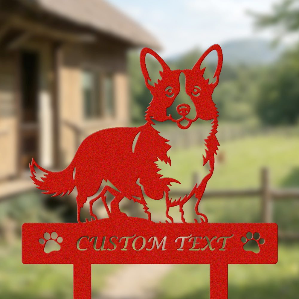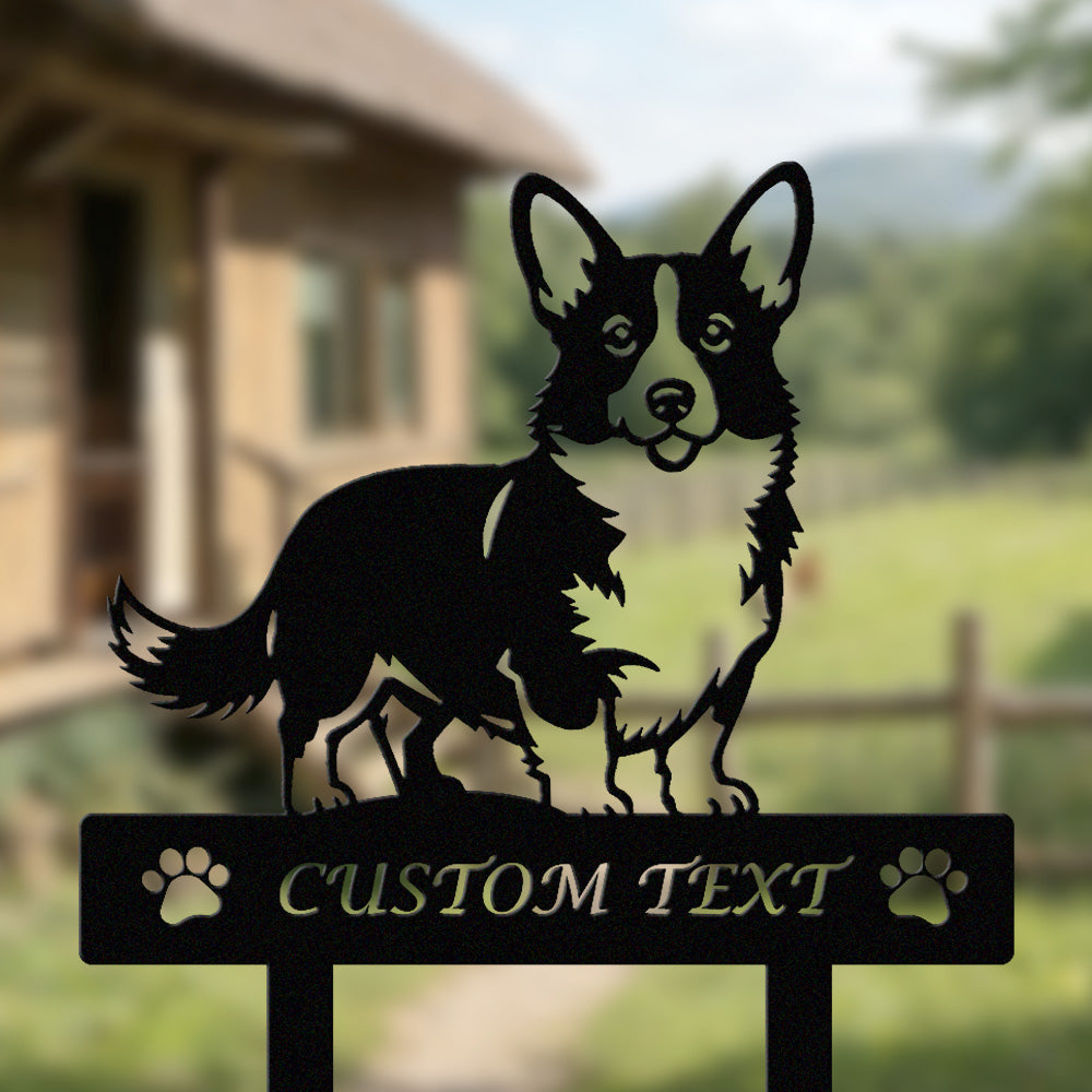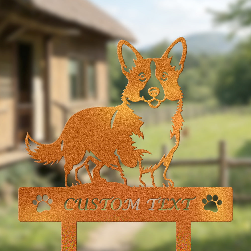 Vallhund Suédois Silhouette de Chien Personnalisée Piquet de Jardin en Métal