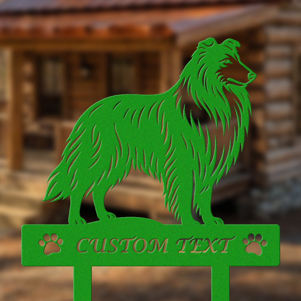 Berger Anglais Ancestral Silhouette de Chien Personnalisée Piquet de Jardin en Métal