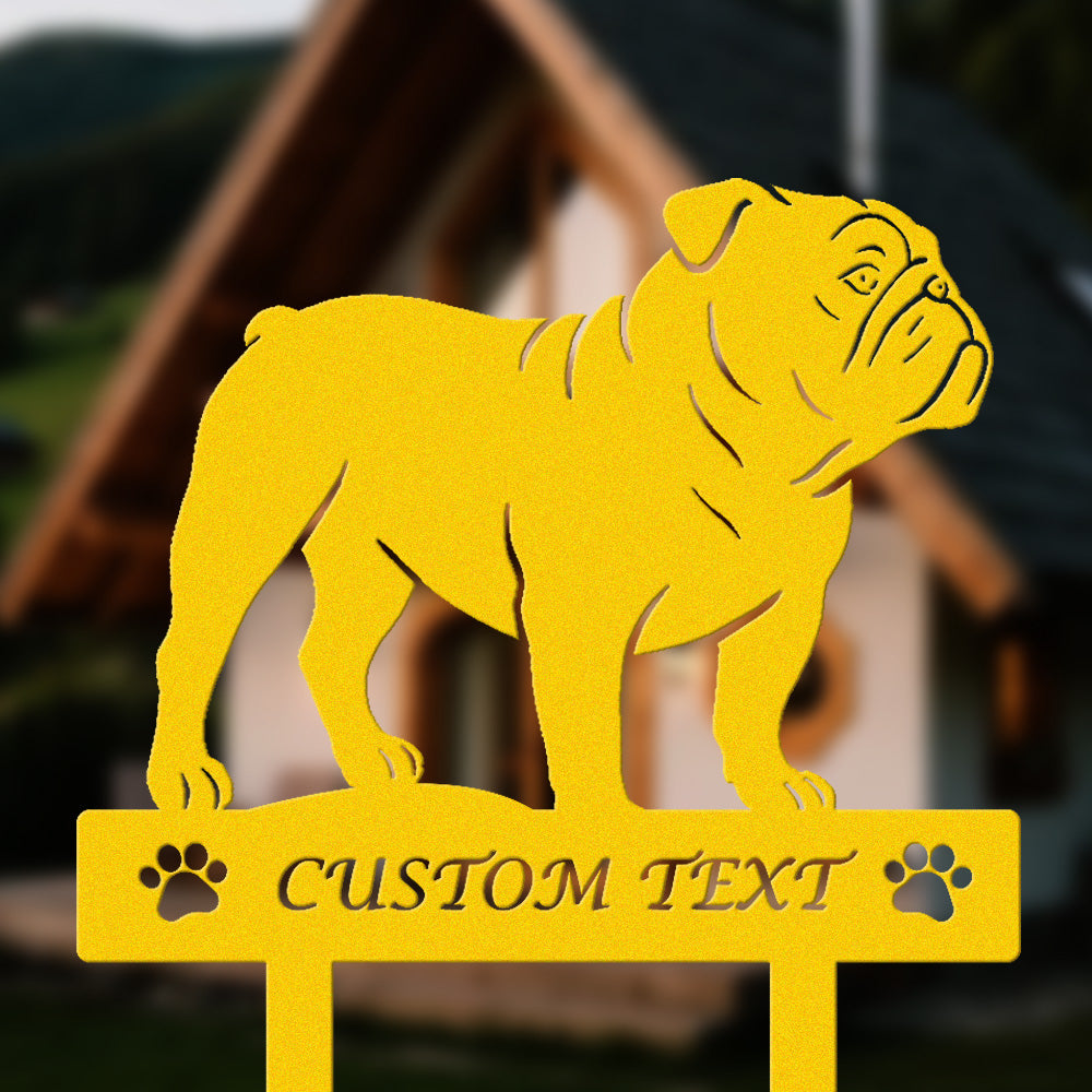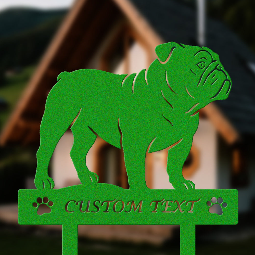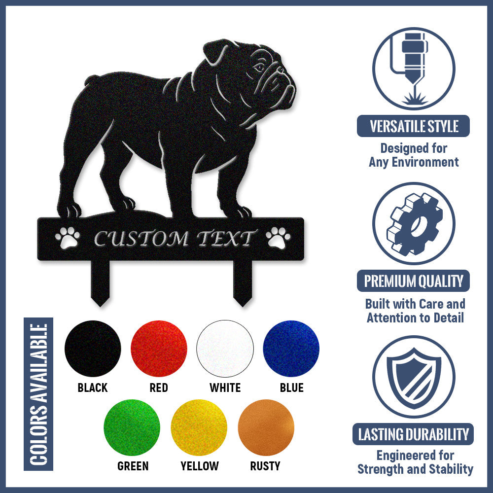 Bouledogue Anglais Silhouette de Chien Personnalisée Piquet de Jardin en Métal