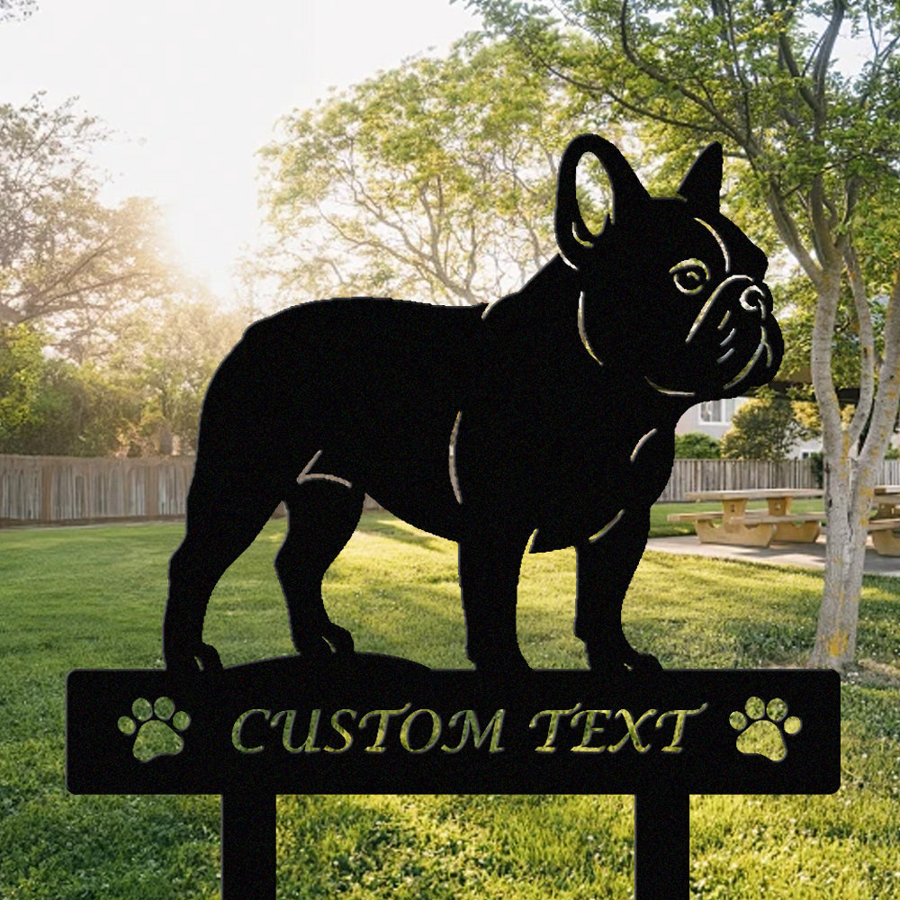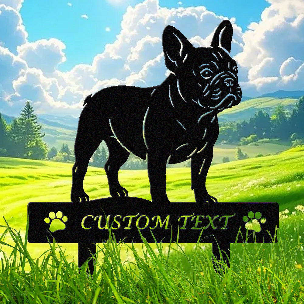 Bouledogue Français Silhouette de Chien Personnalisée Piquet de Jardin en Métal