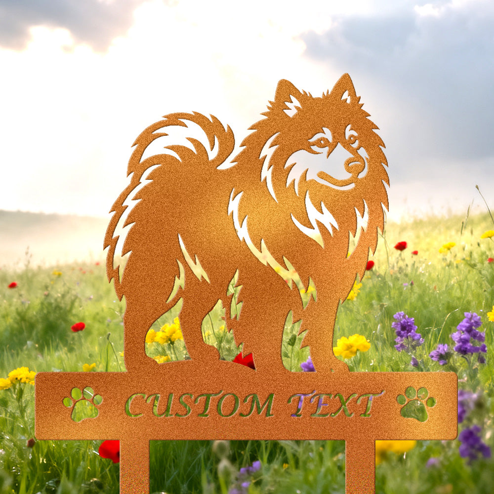 Pomeranian Silhouette de Chien Personnalisée Piquet de Jardin en Métal