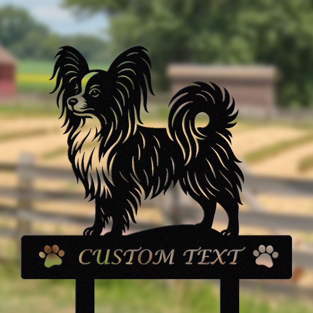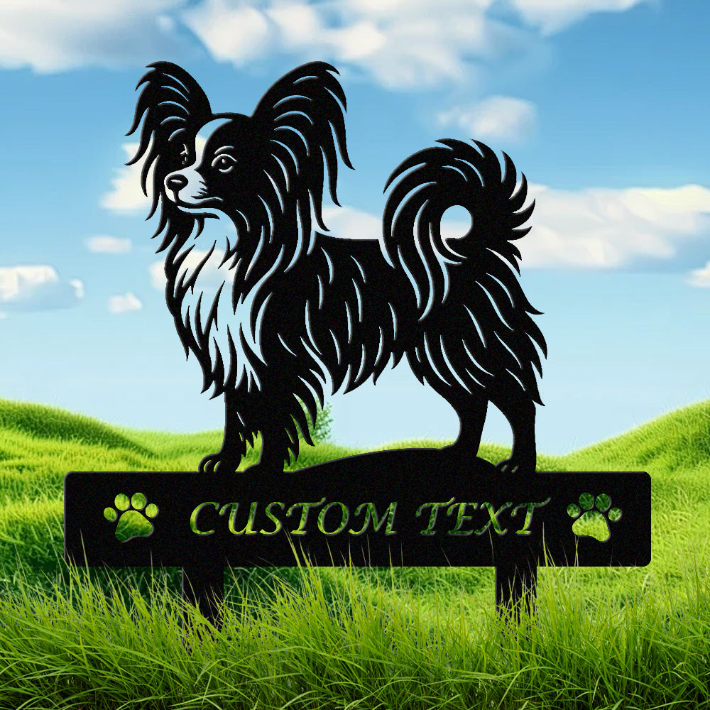 Papillon Silhouette de Chien Personnalisée Piquet de Jardin en Métal