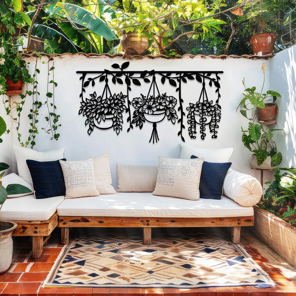 3 Pièces Jardin Fleuri Métal Décoratif Mural - Décoration Murale Intérieur et Extérieur