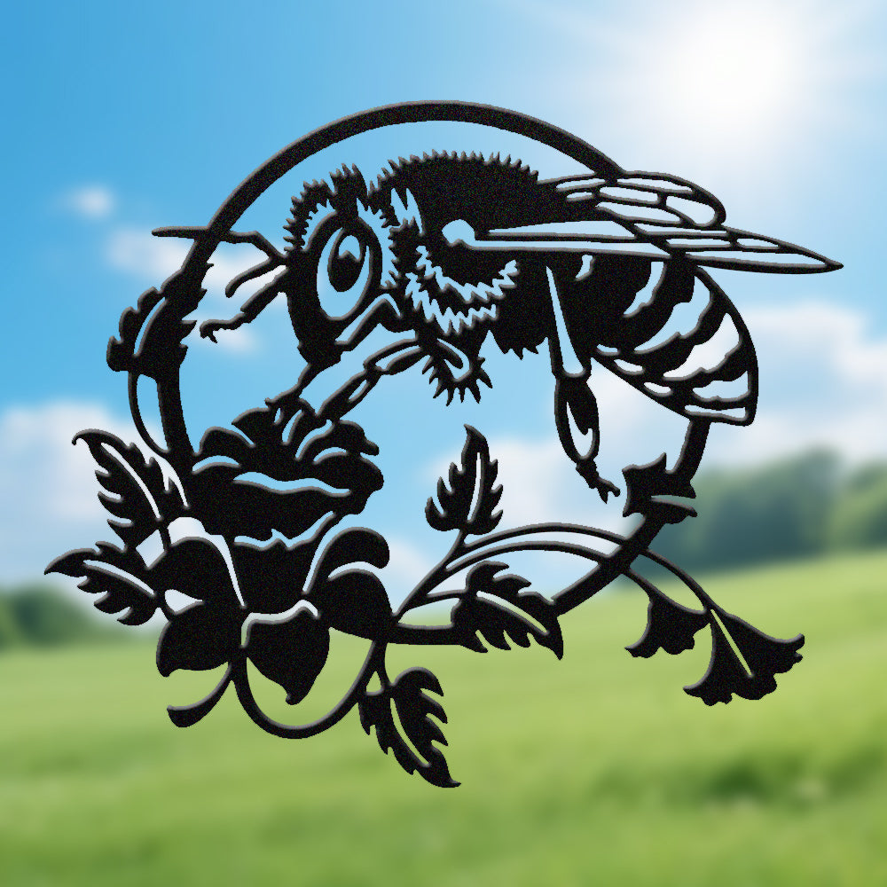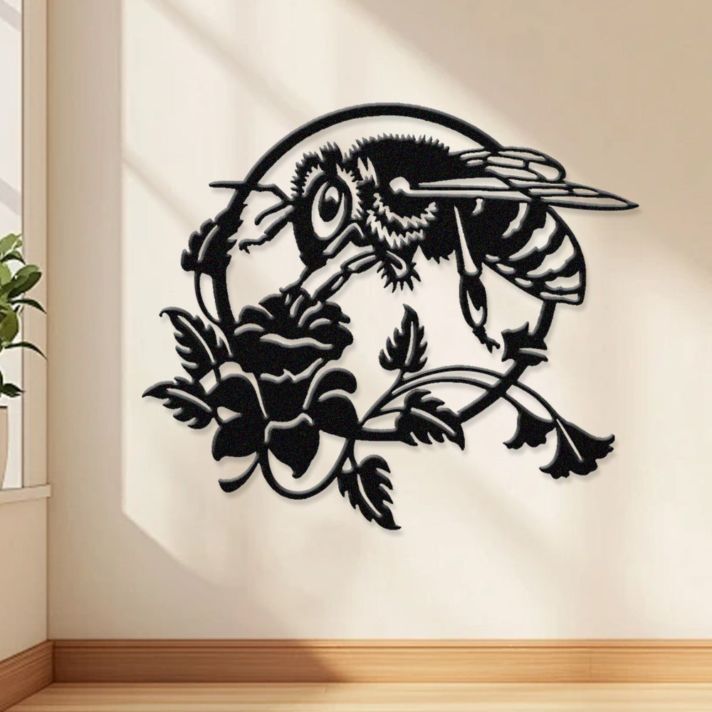 Abeille et Rose Métal Décoratif Mural - Décor Nature en Fer avec Accents Floraux