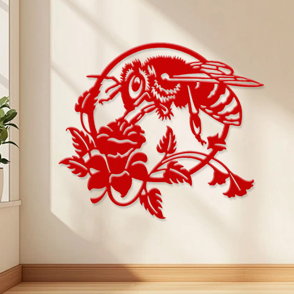 Abeille et Fleur Personnalisé Métal Décoratif Mural - Décor en Fer Rayon de Miel Personnalisé