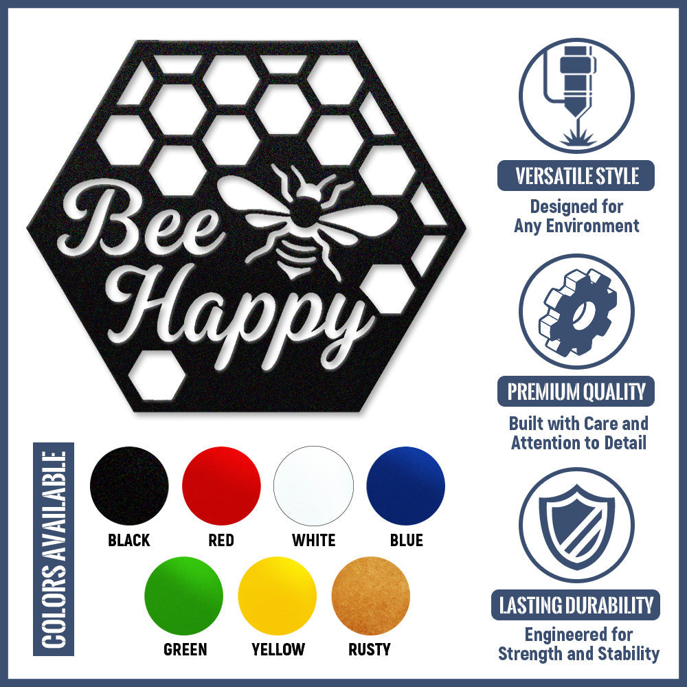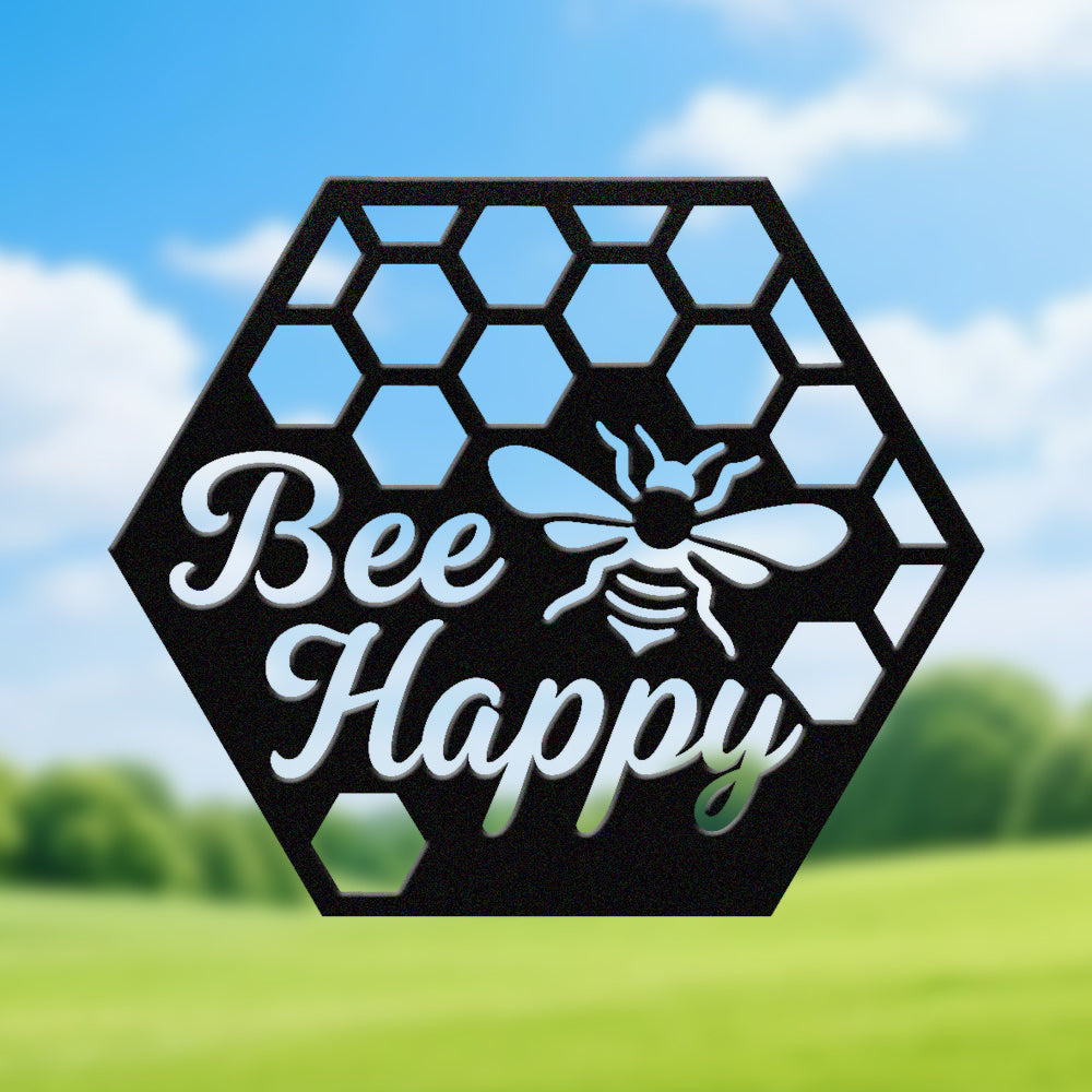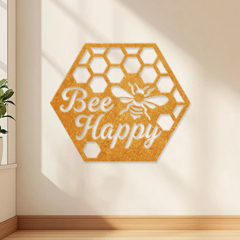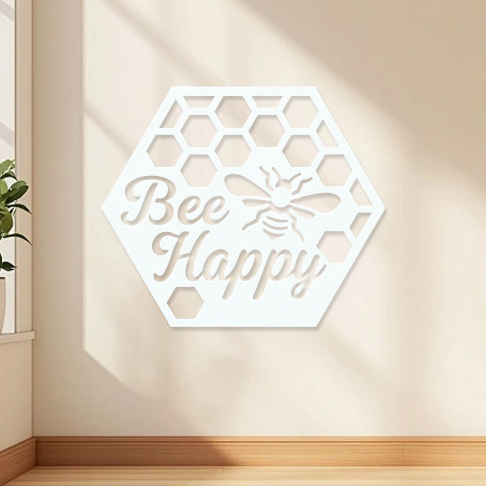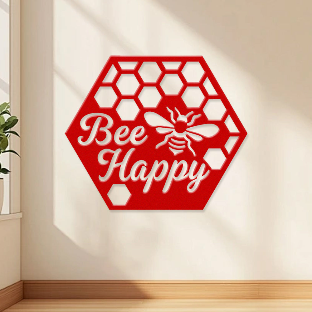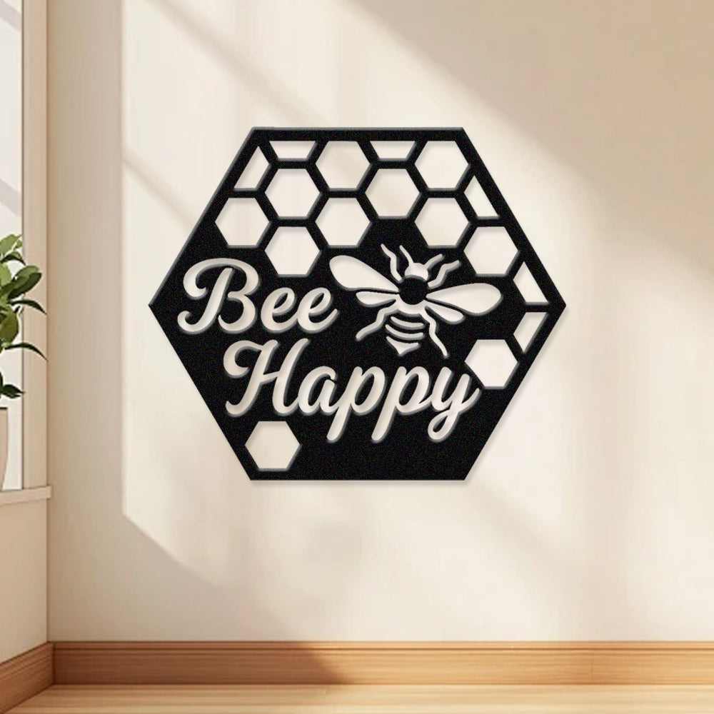 Abeille Heureuse Métal Décoratif Mural - Décor en Fer Rayon de Miel avec Motif d'Abeille