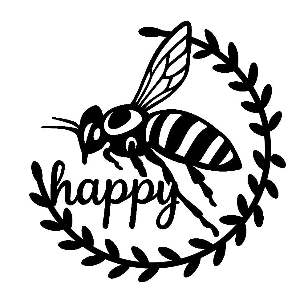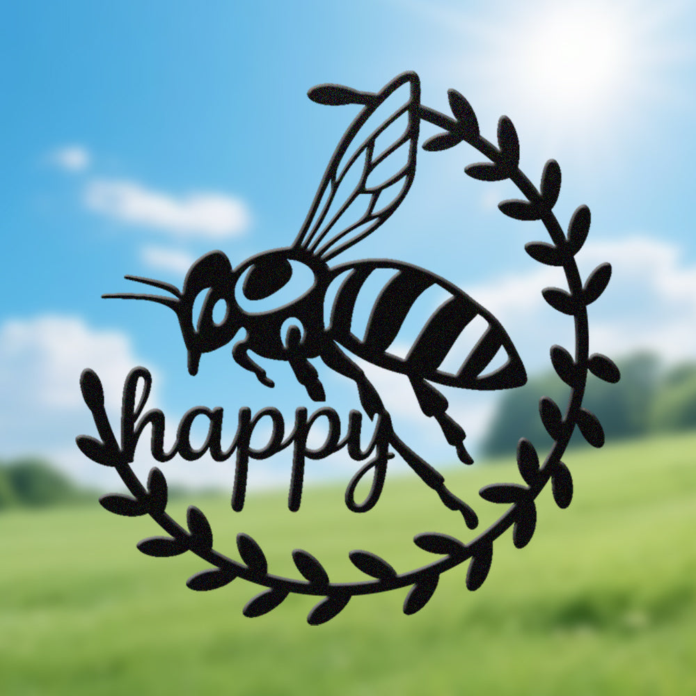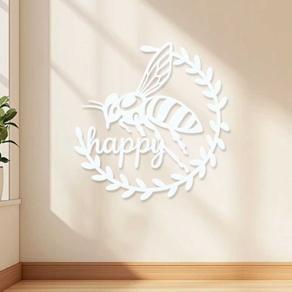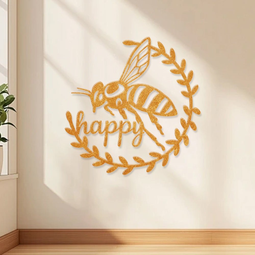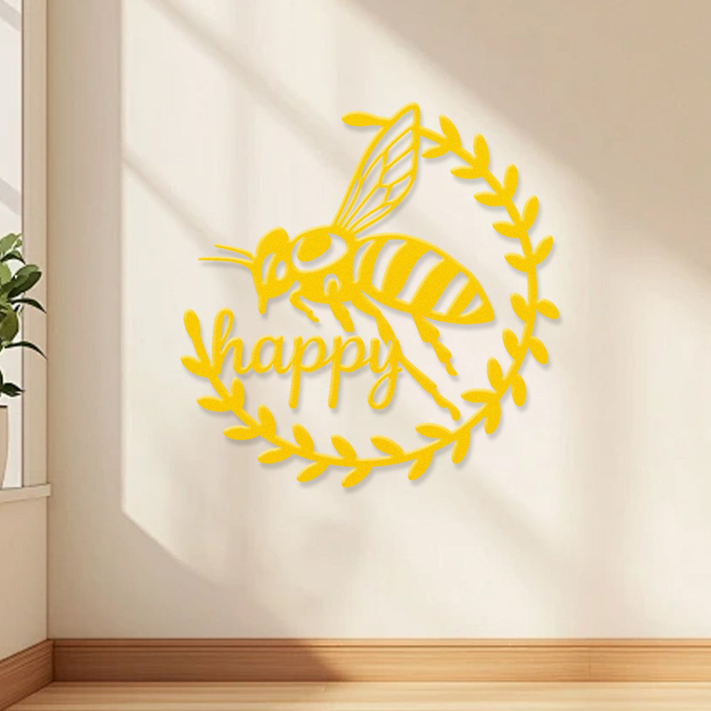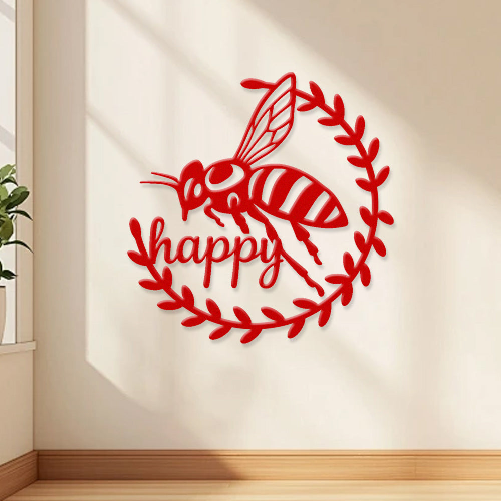 Abeille Heureuse Métal Décoratif Mural - Décor en Fer Couronne d'Abeille et Feuilles