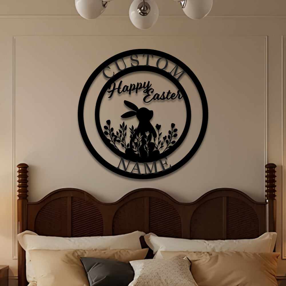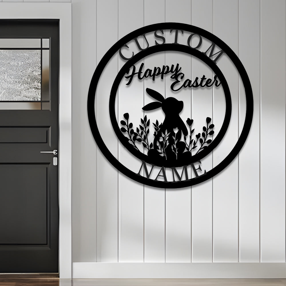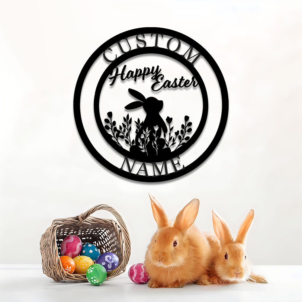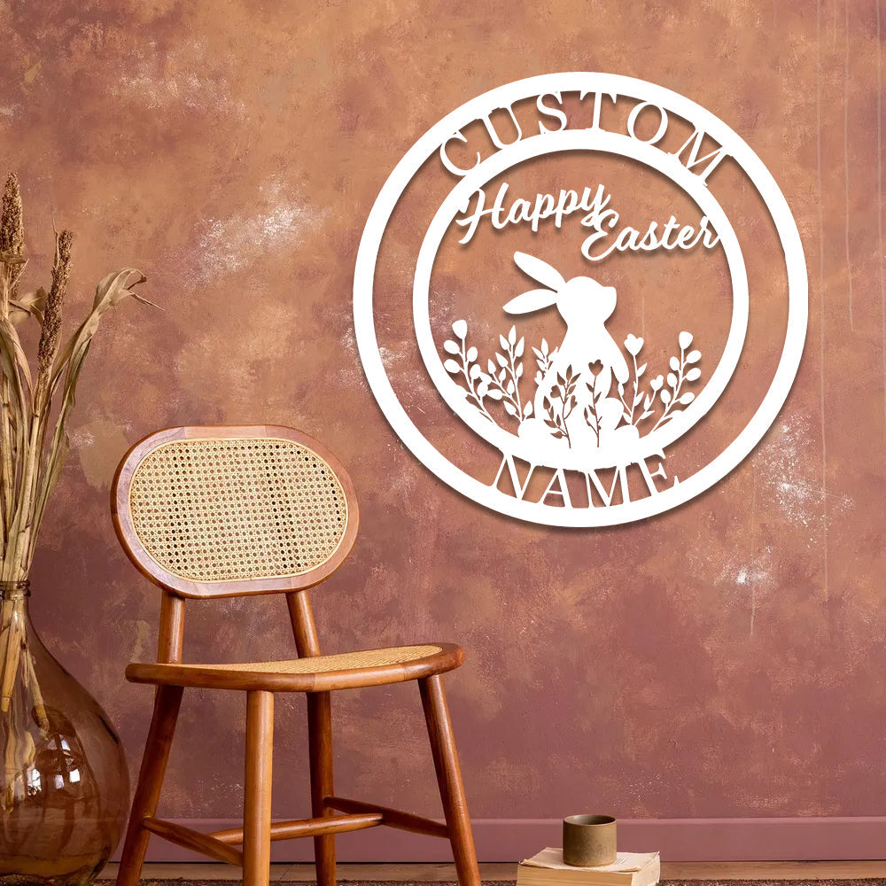 Nom Lapin de Pâques Personnalisé Plaque en Métal Décoratif Mural