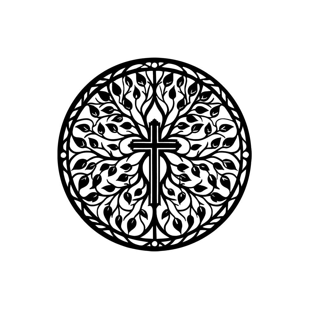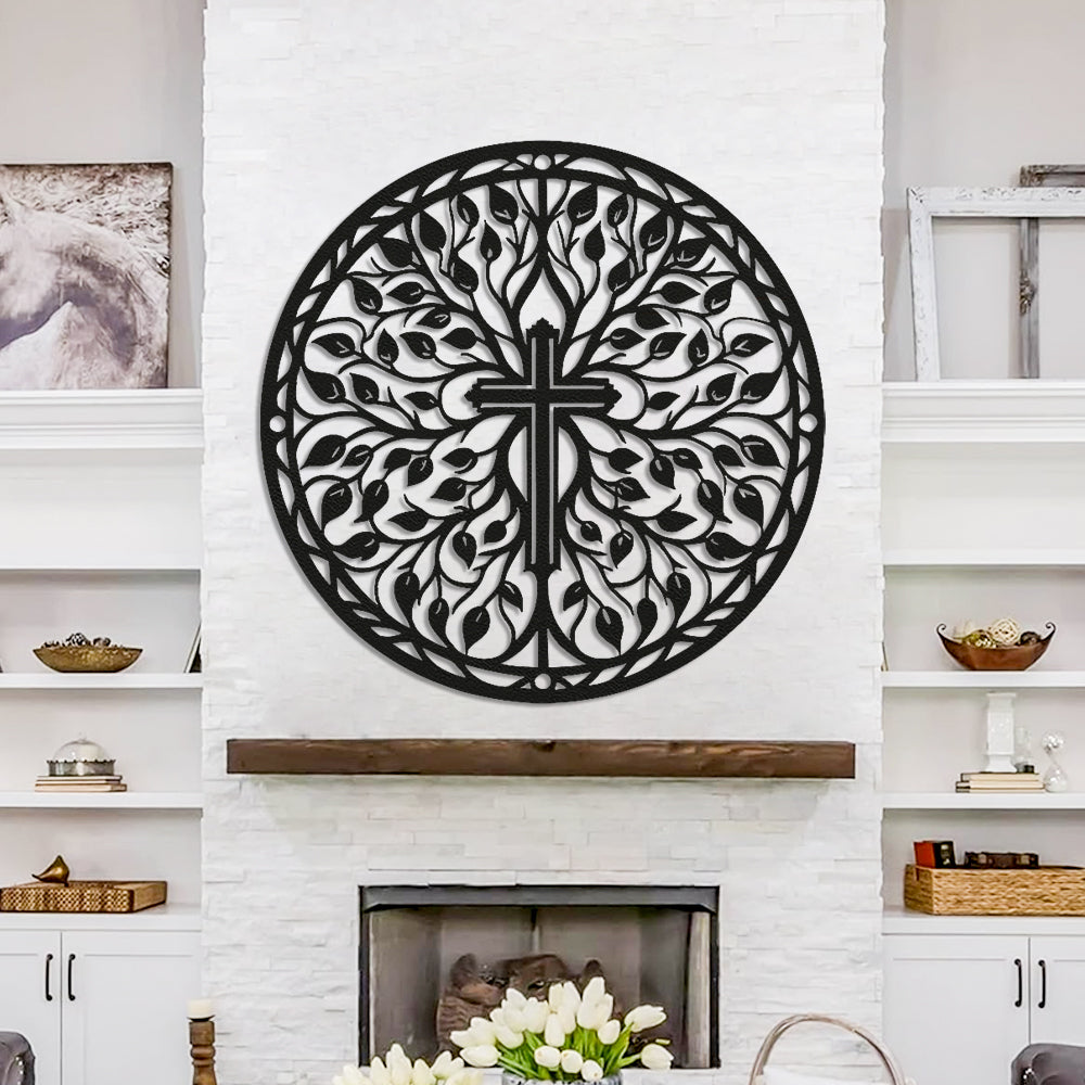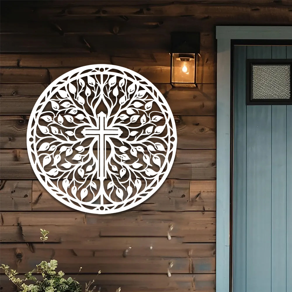 Pâques Croix avec Branches et Feuilles Plaque en Métal Décoratif Mural