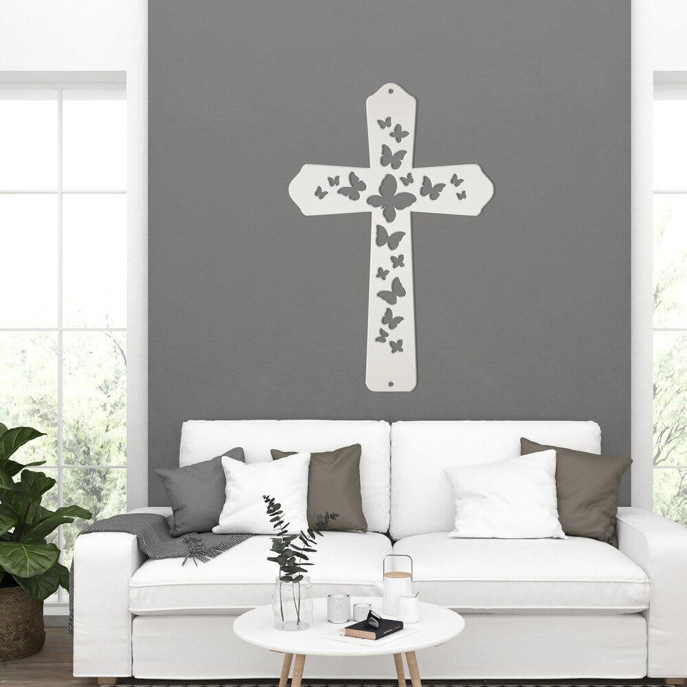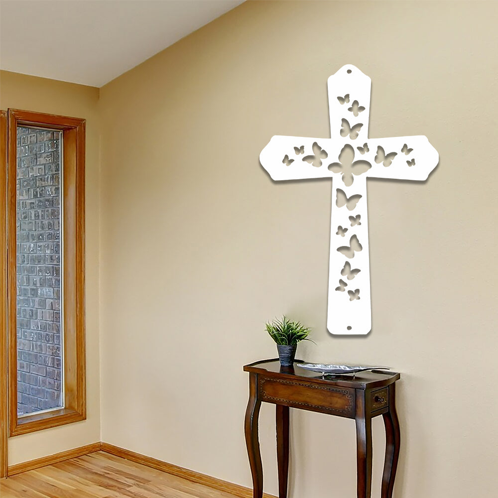 Pâques Croix Papillon Plaque en Métal Décoratif Mural
