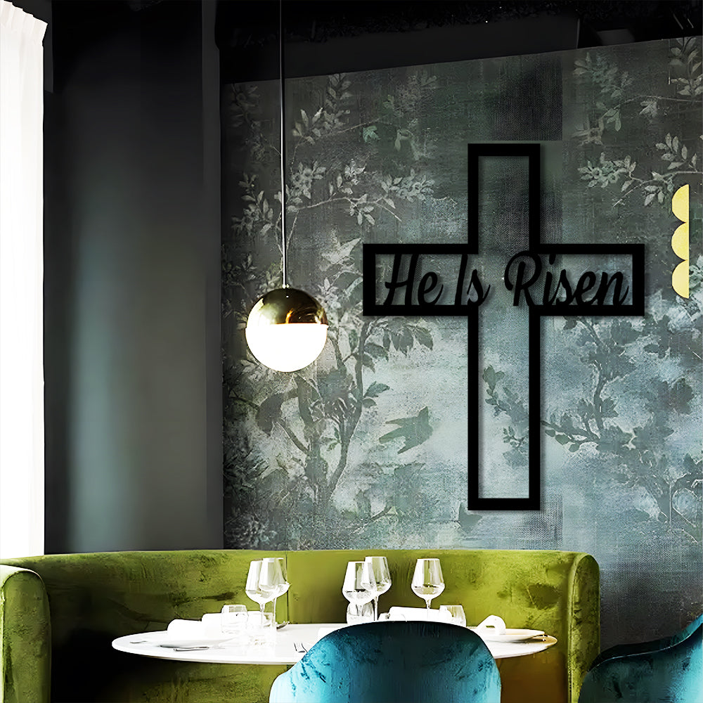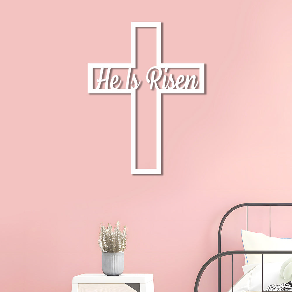 Pâques Il Est Ressuscité Croix Piquet Plaque en Métal Décoratif Mural