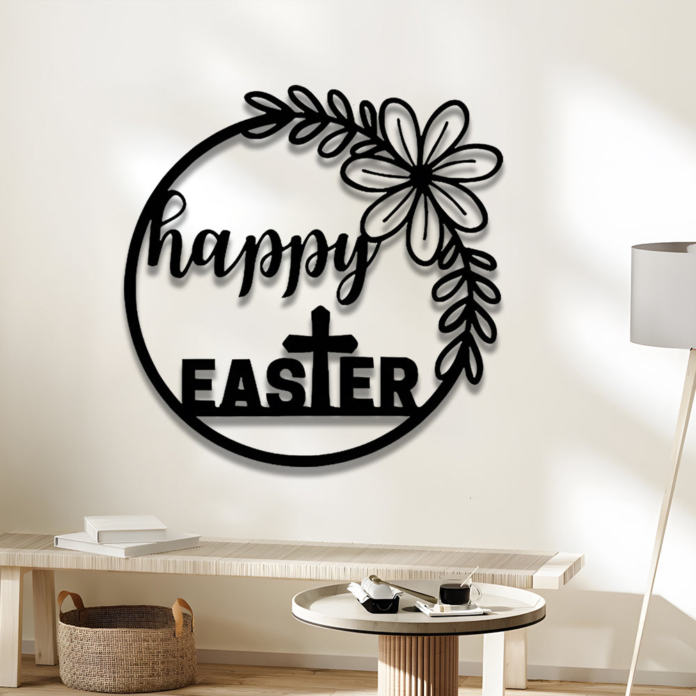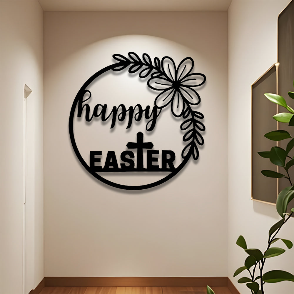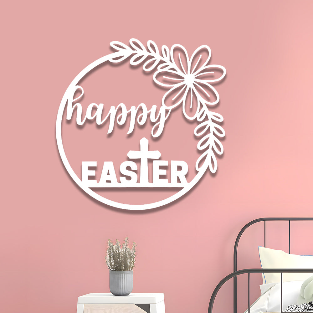 Panneau Joyeuses Pâques Plaque en Métal Décoratif Mural