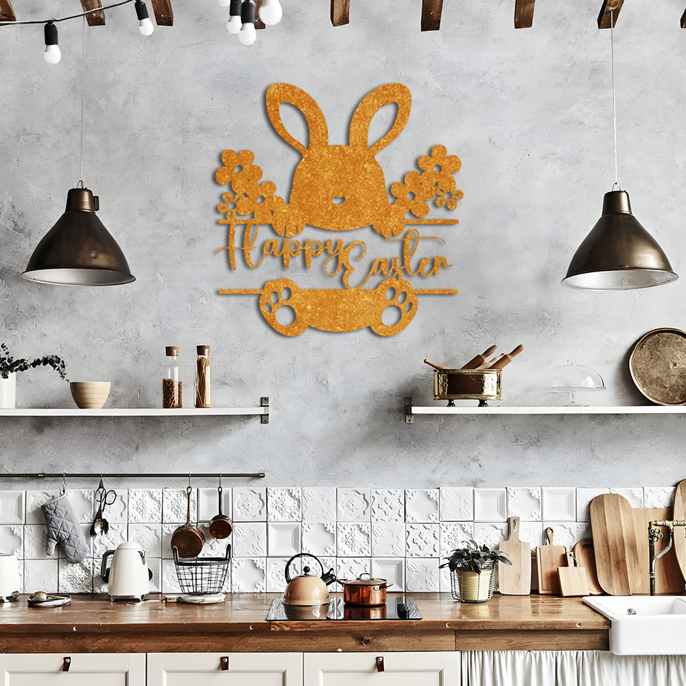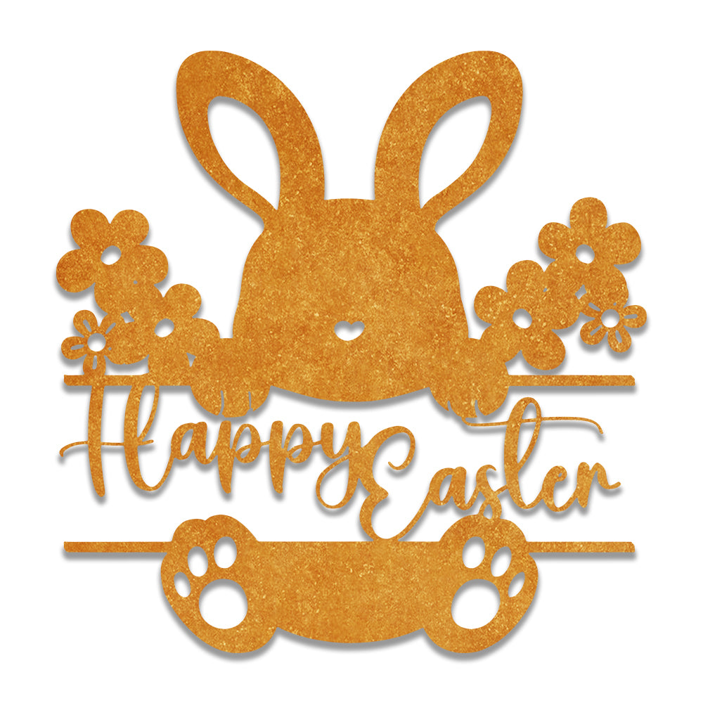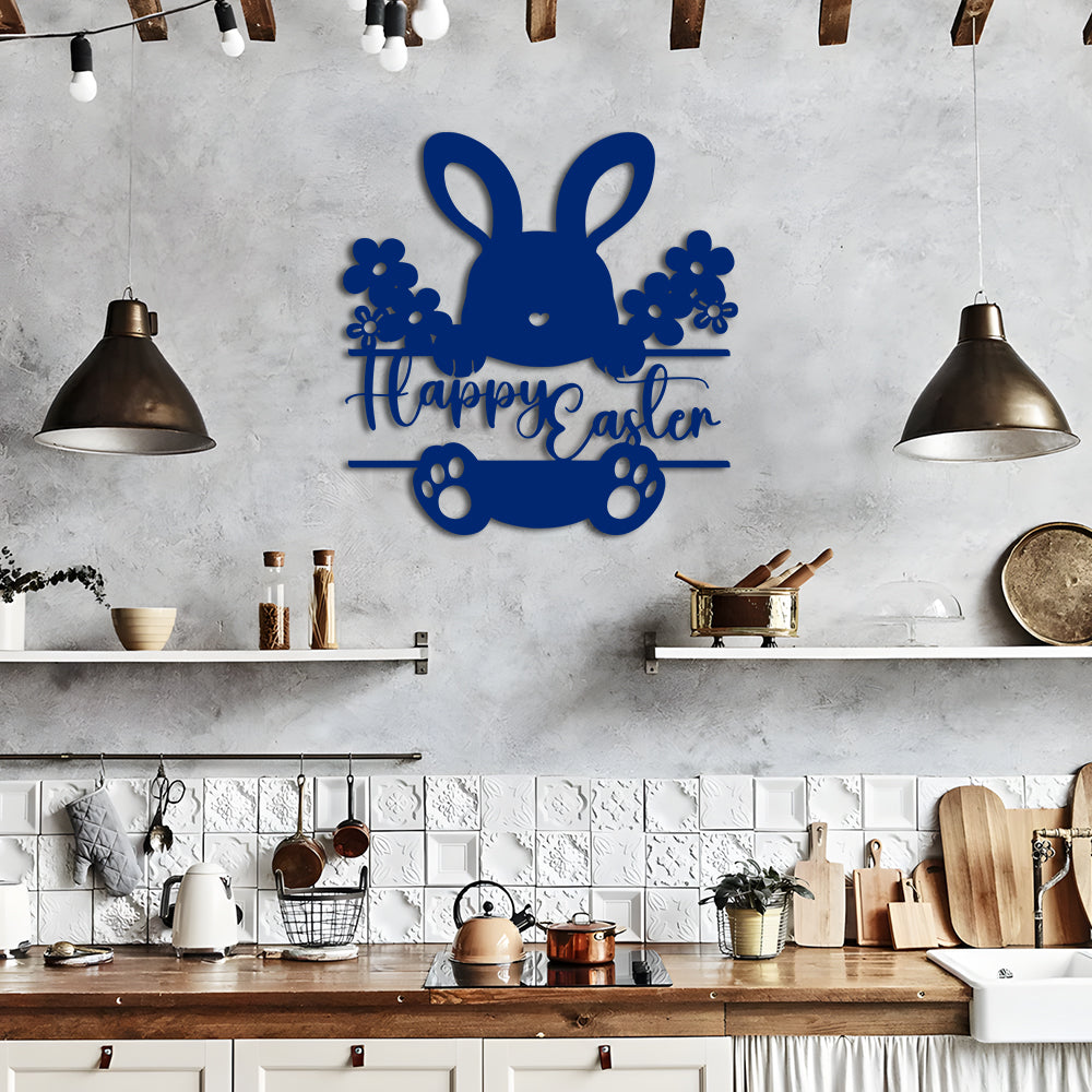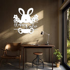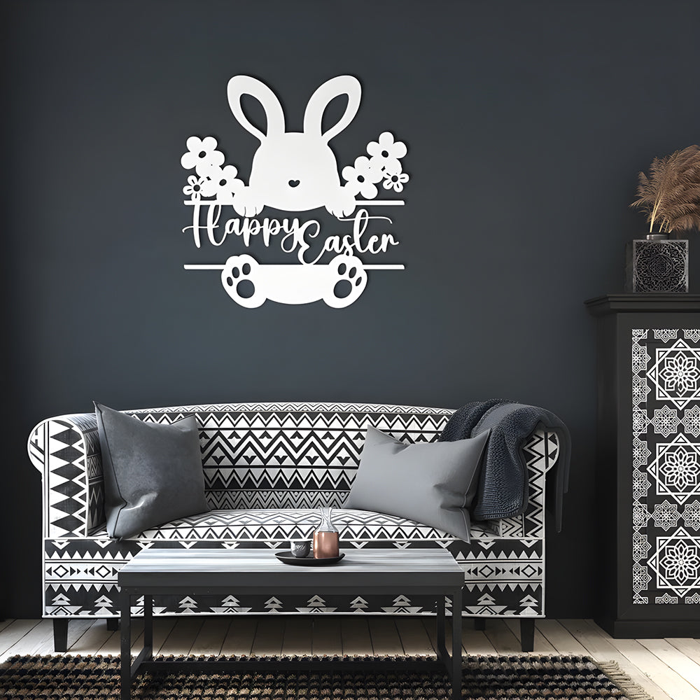 Panneau Lapin Joyeux Pâques Plaque en Métal Décoratif Mural