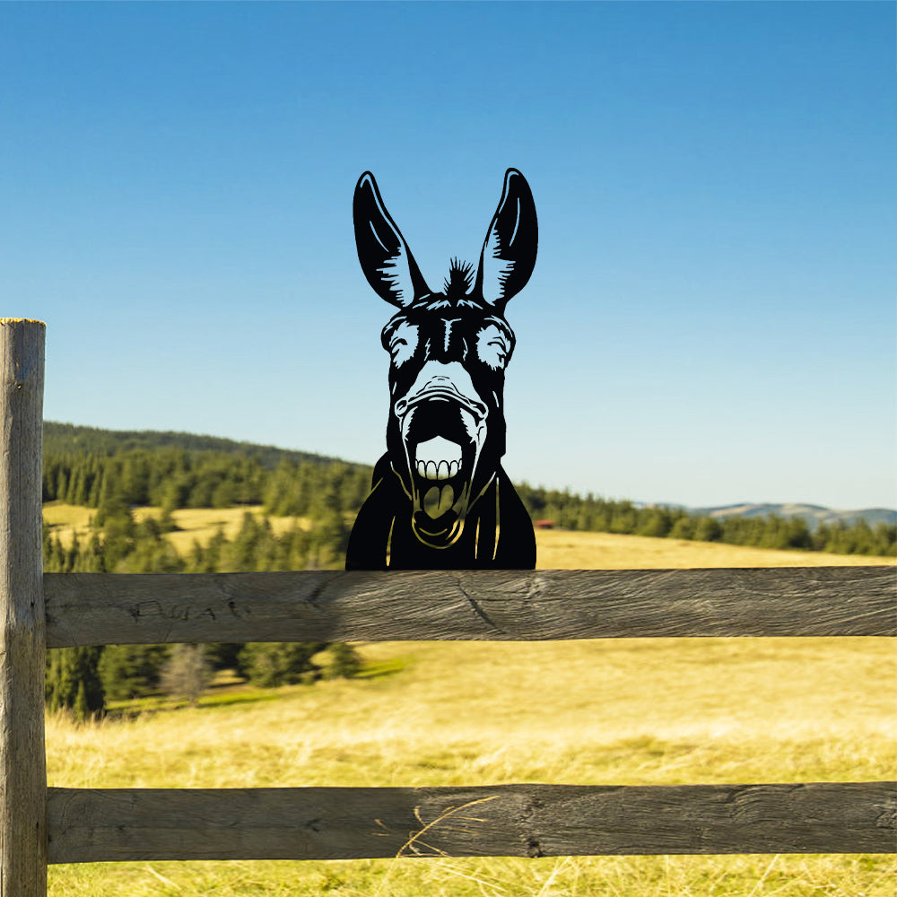 Âne Espiègle Curieux Plaque Métallique – Décoration de Jardin Extérieur Animale