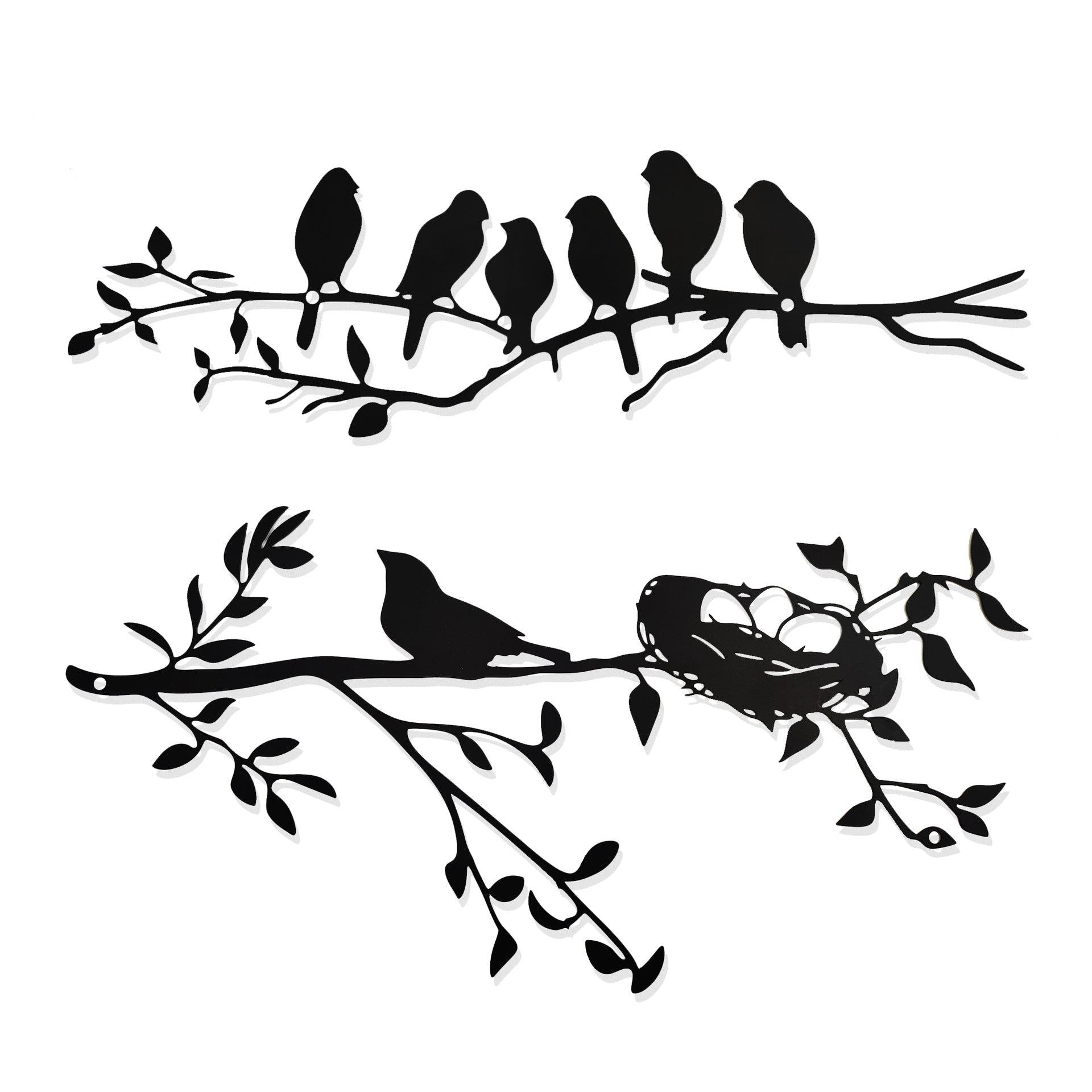 2 Pièces Oiseau et Branche Décor Murral Suspendu Moderne en Métal