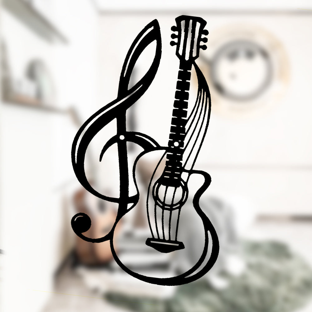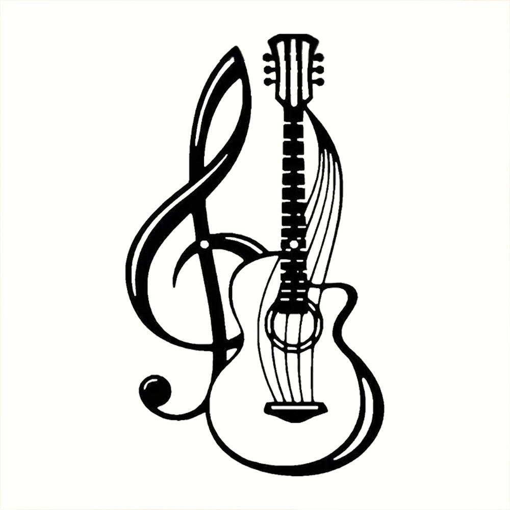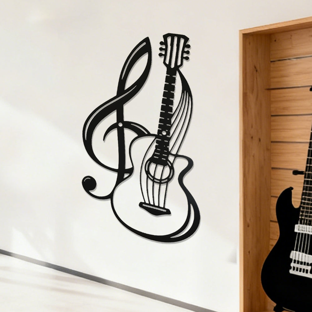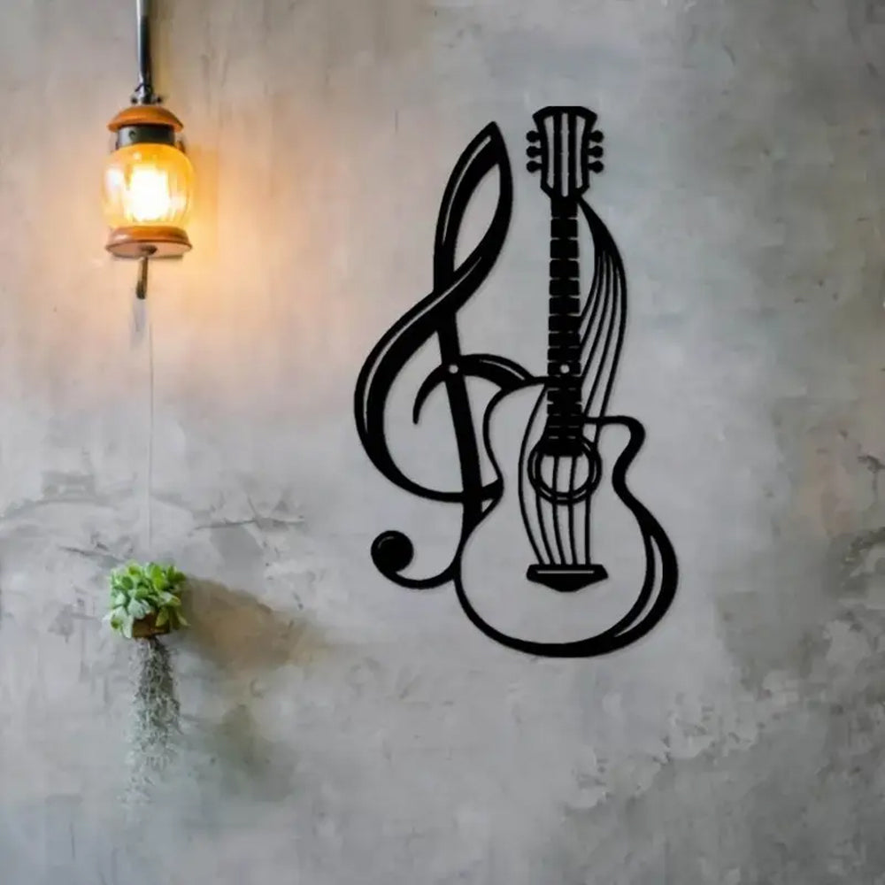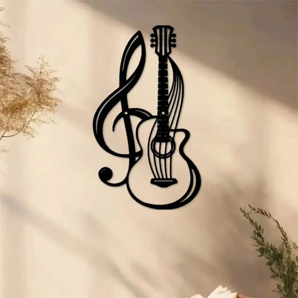 Note de Musique Noire et Guitare Plaque en Métal Décoratif Mural