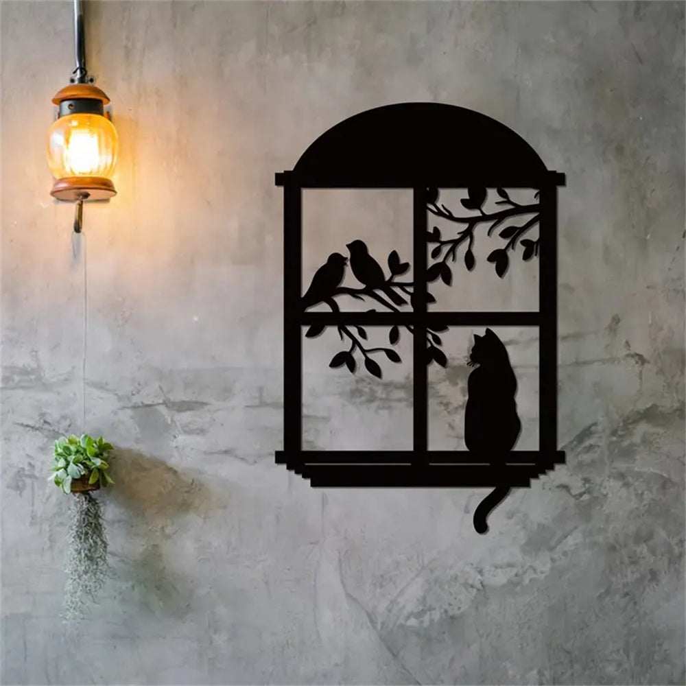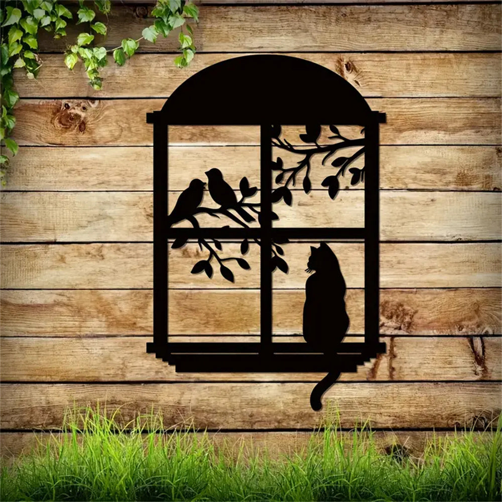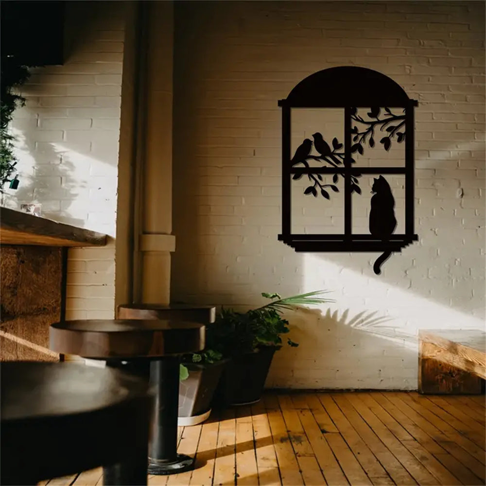 Chat et Oiseau Fenêtre Métal Décoratif Mural