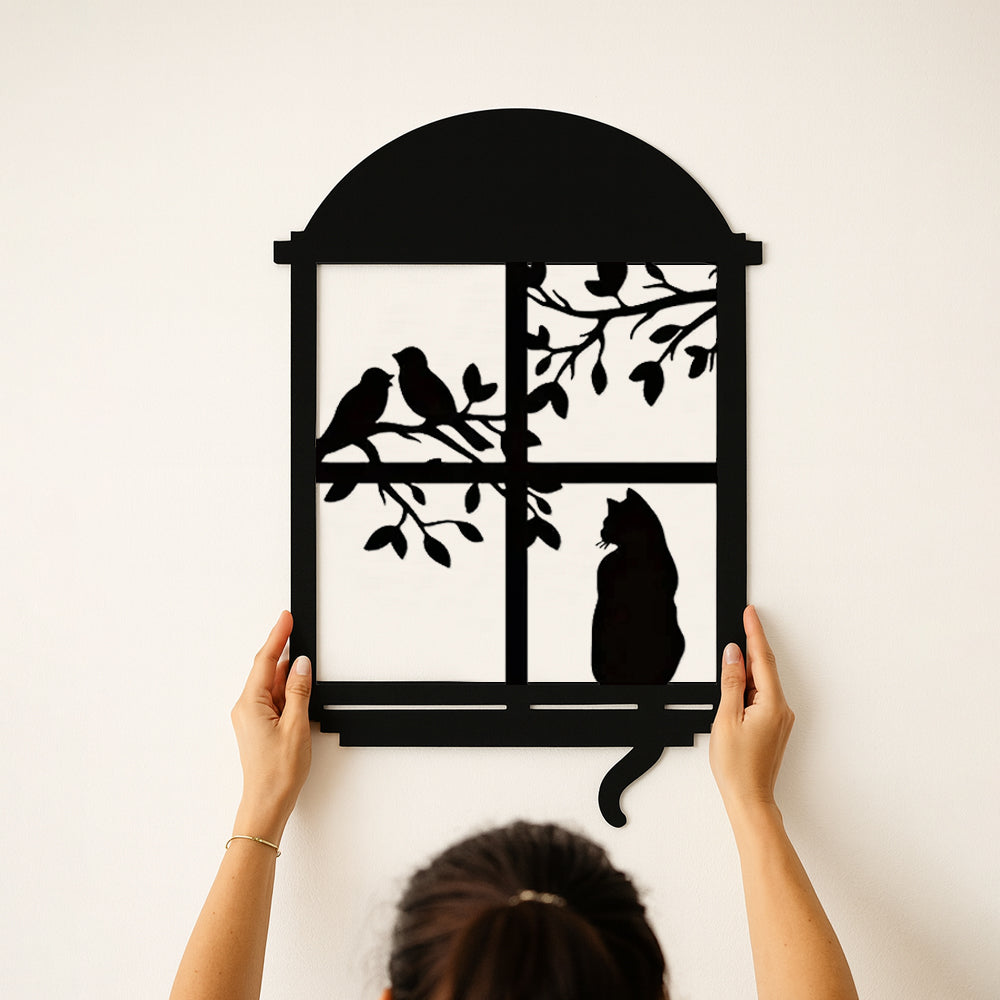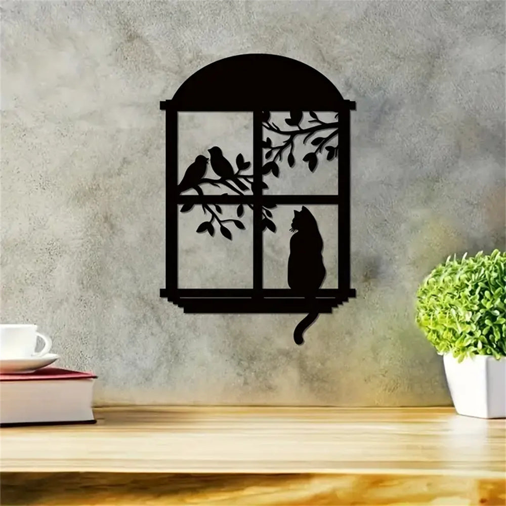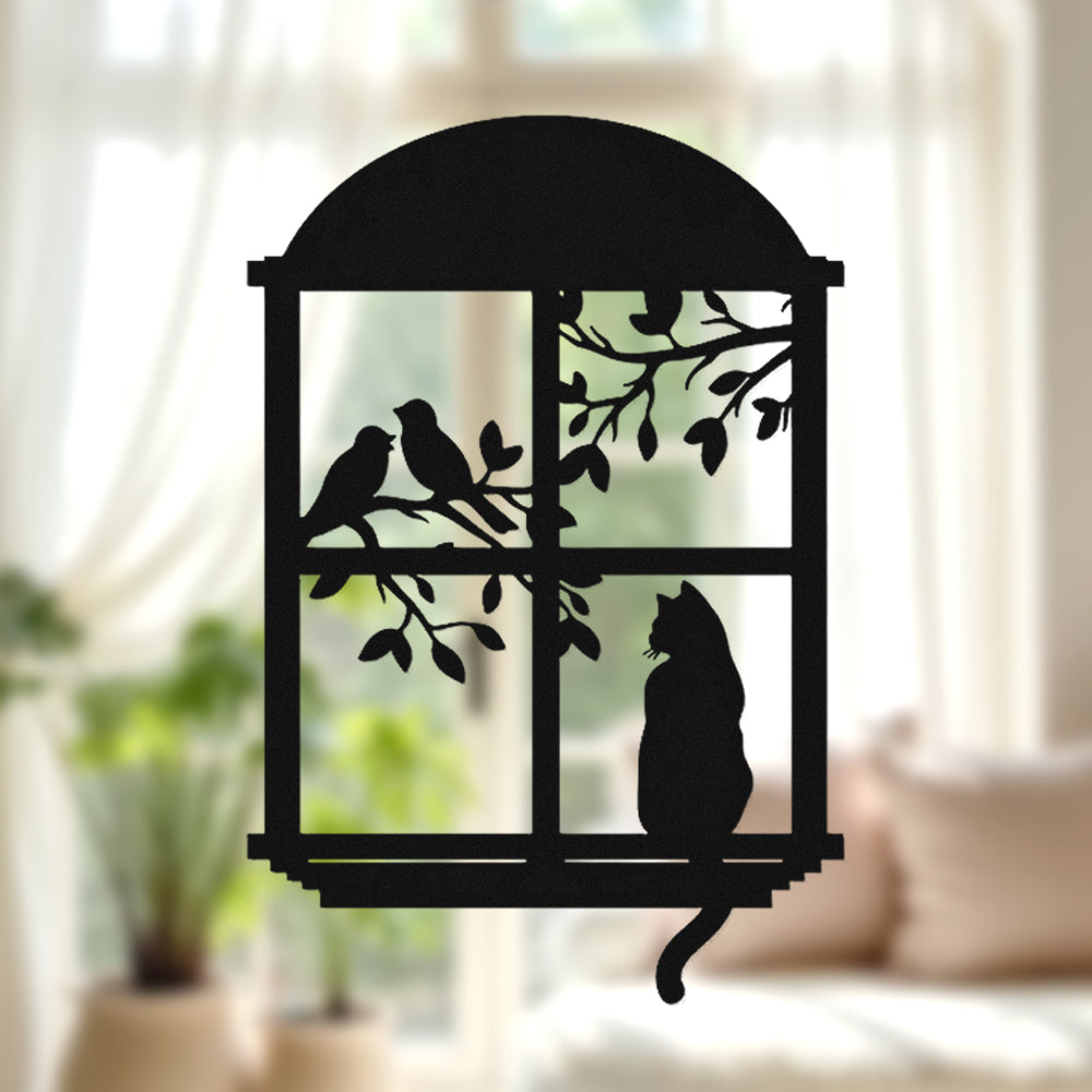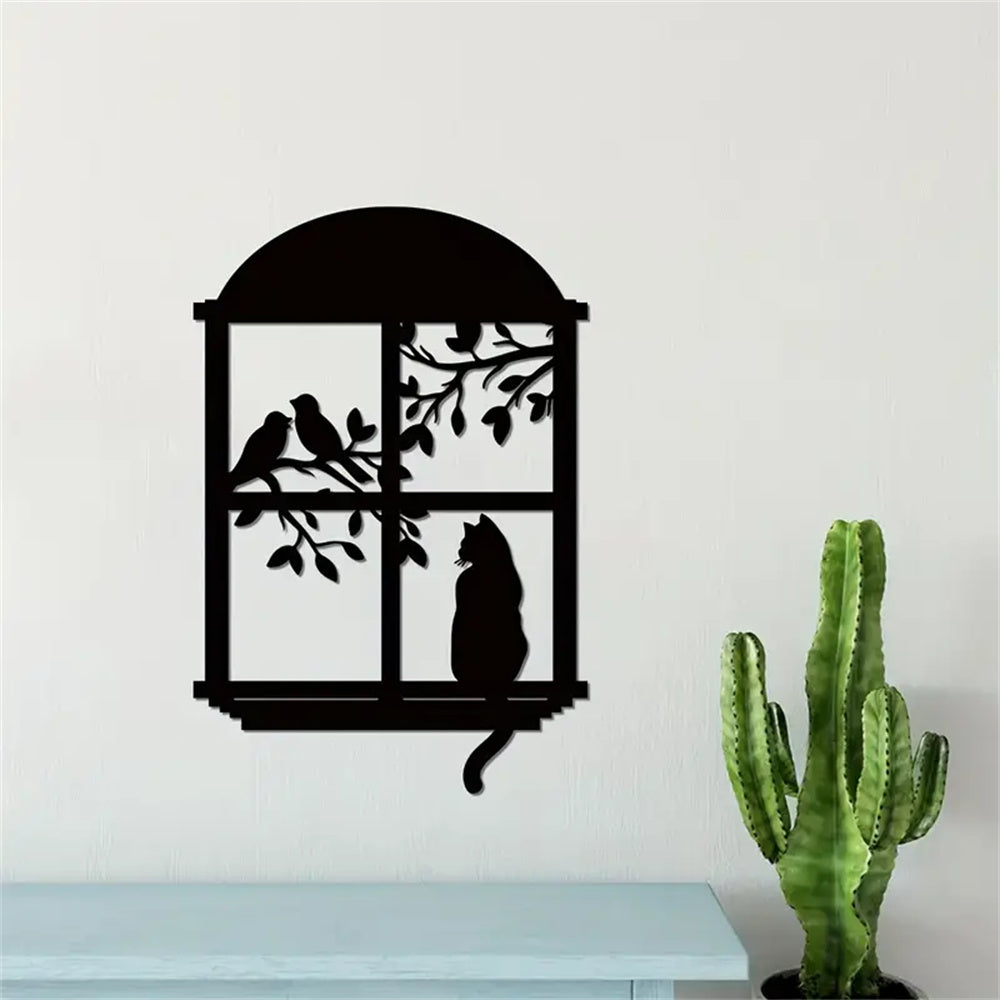 Chat et Oiseau Fenêtre Métal Décoratif Mural