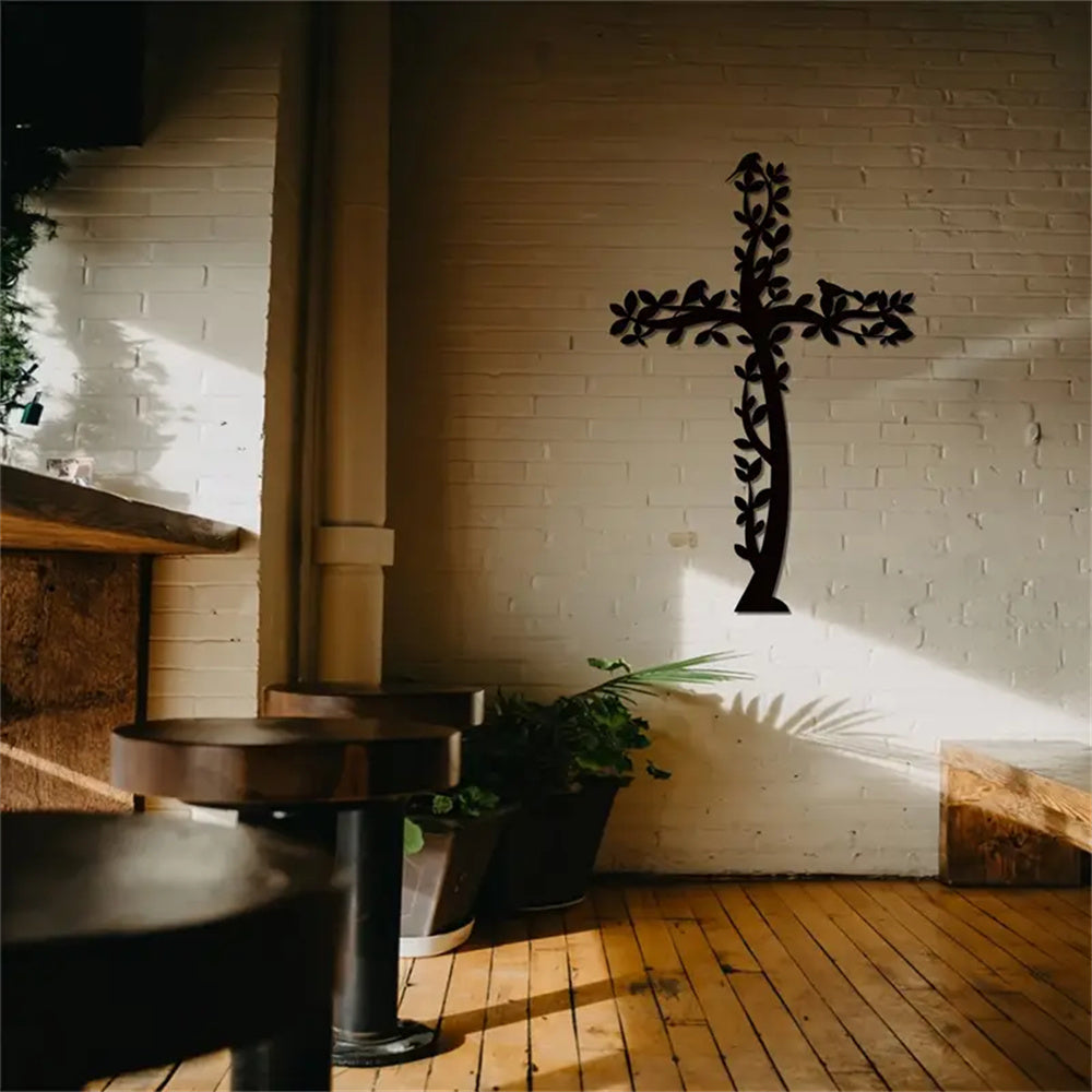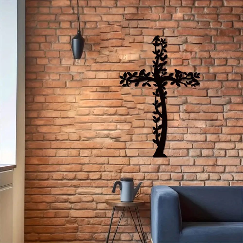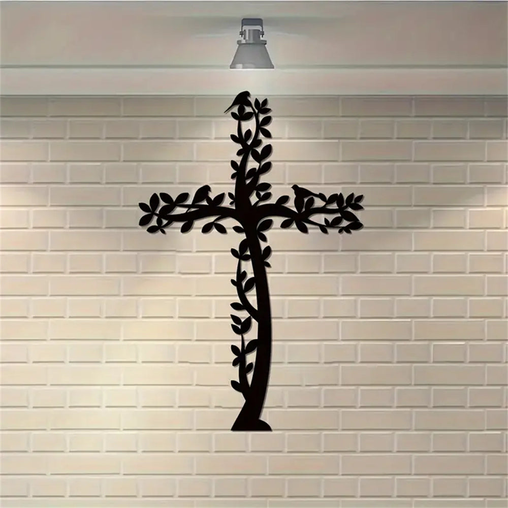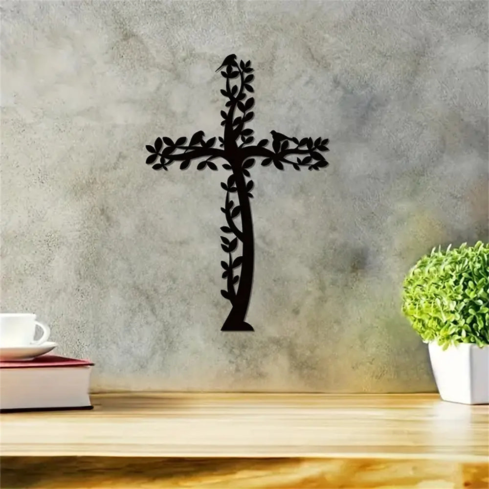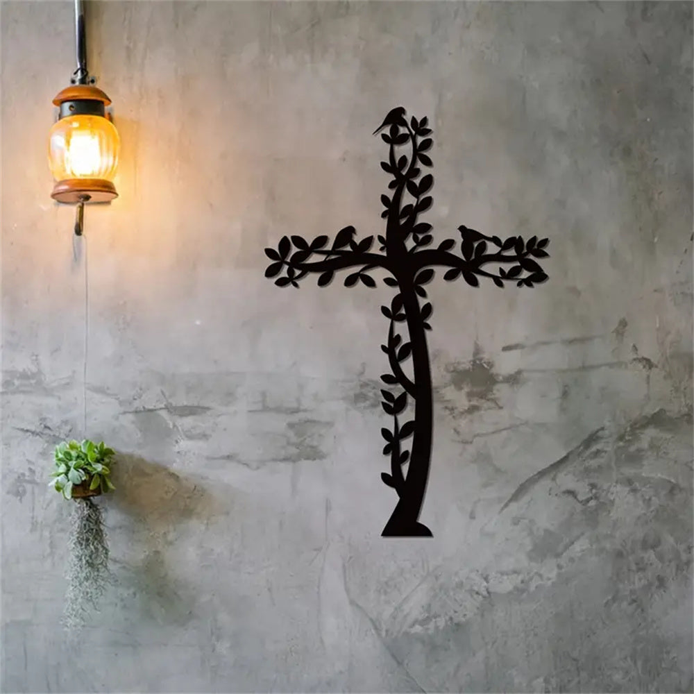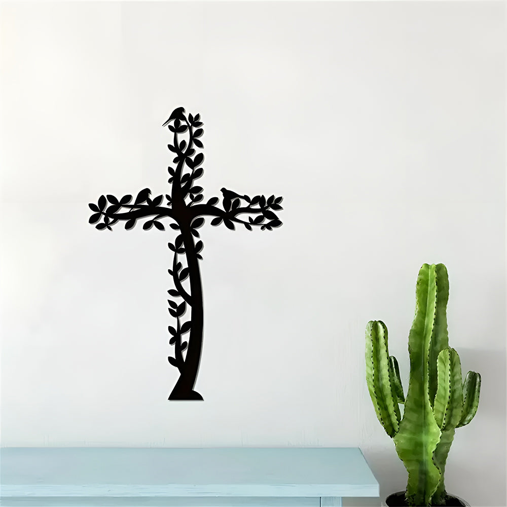 Croix en Métal Art Mural Arbre et Oiseaux Croix de Vie Suspendue