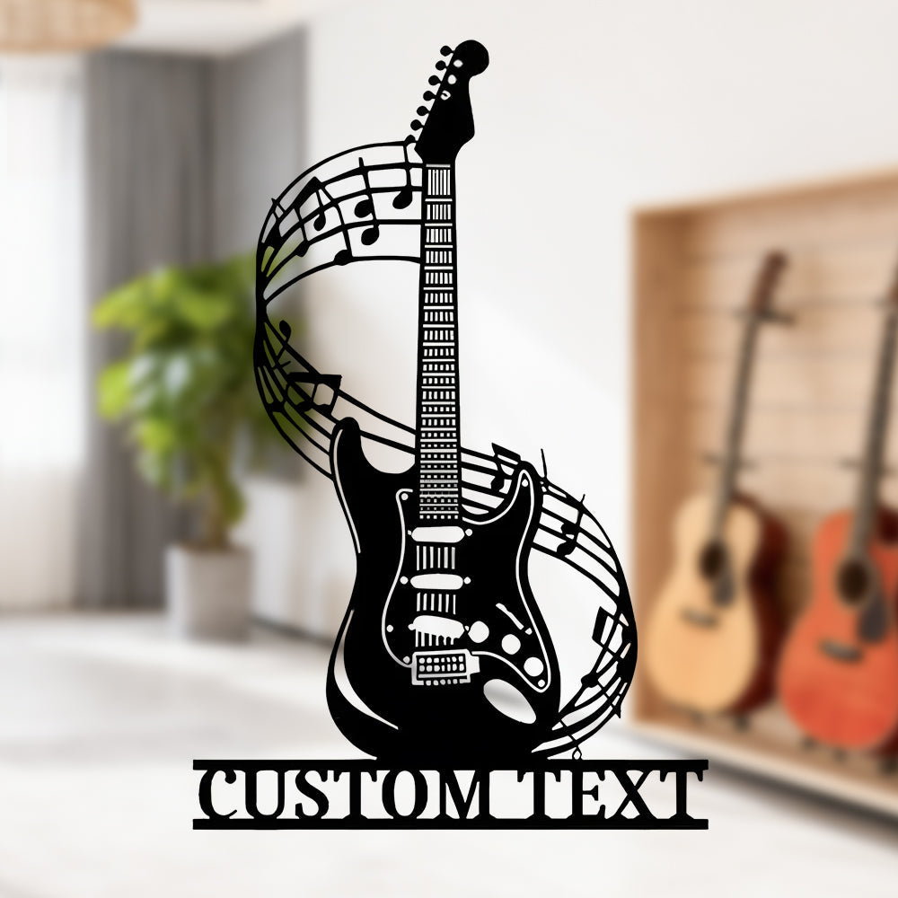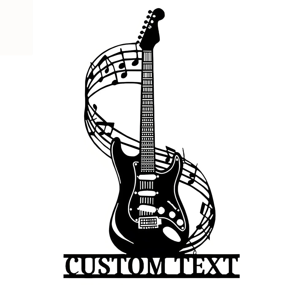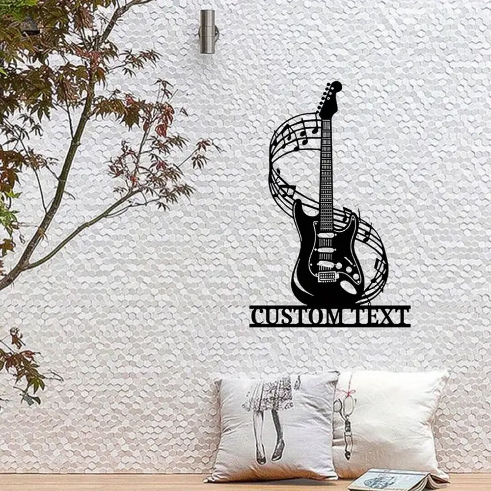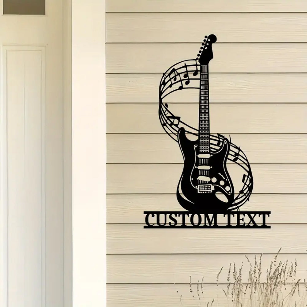 Guitare avec Notes de Musique Personnalisée Plaque en Métal Décoratif Mural