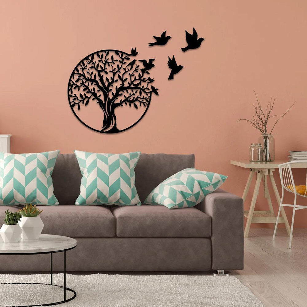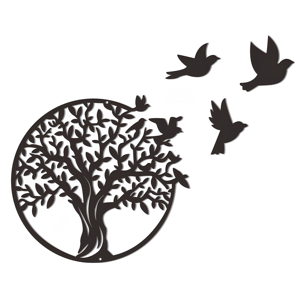Arbre de la Vie et Oiseaux Migrateurs Art Mural en Métal