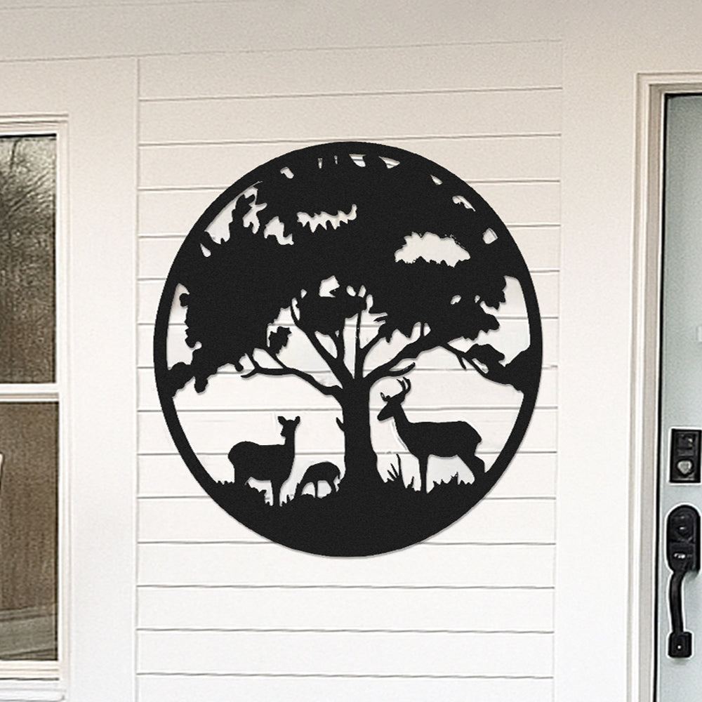 Décoration de Cerf en Métal Arbre de la Vie Métal Décoratif Mural