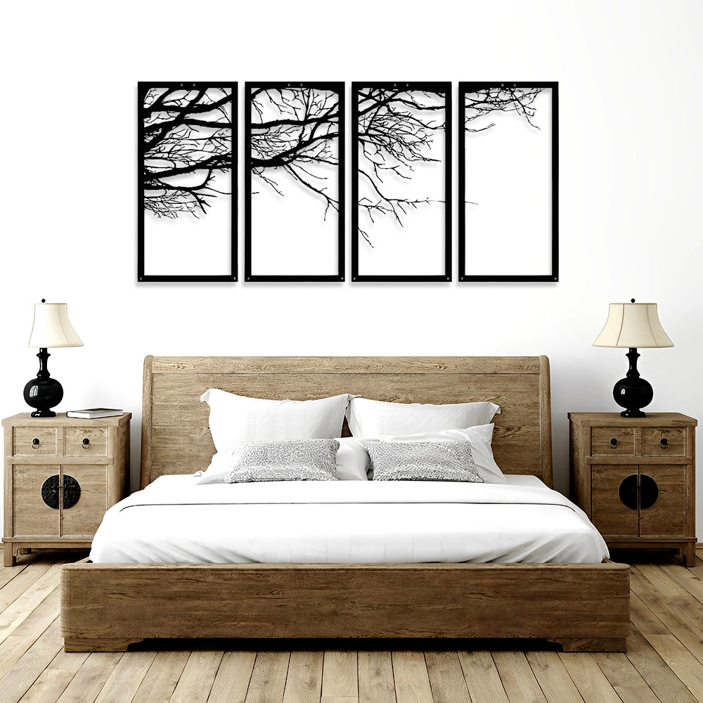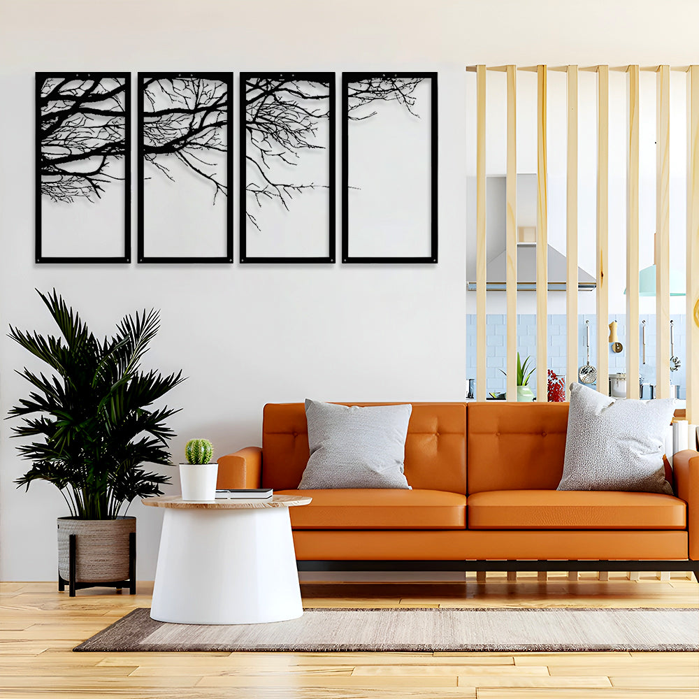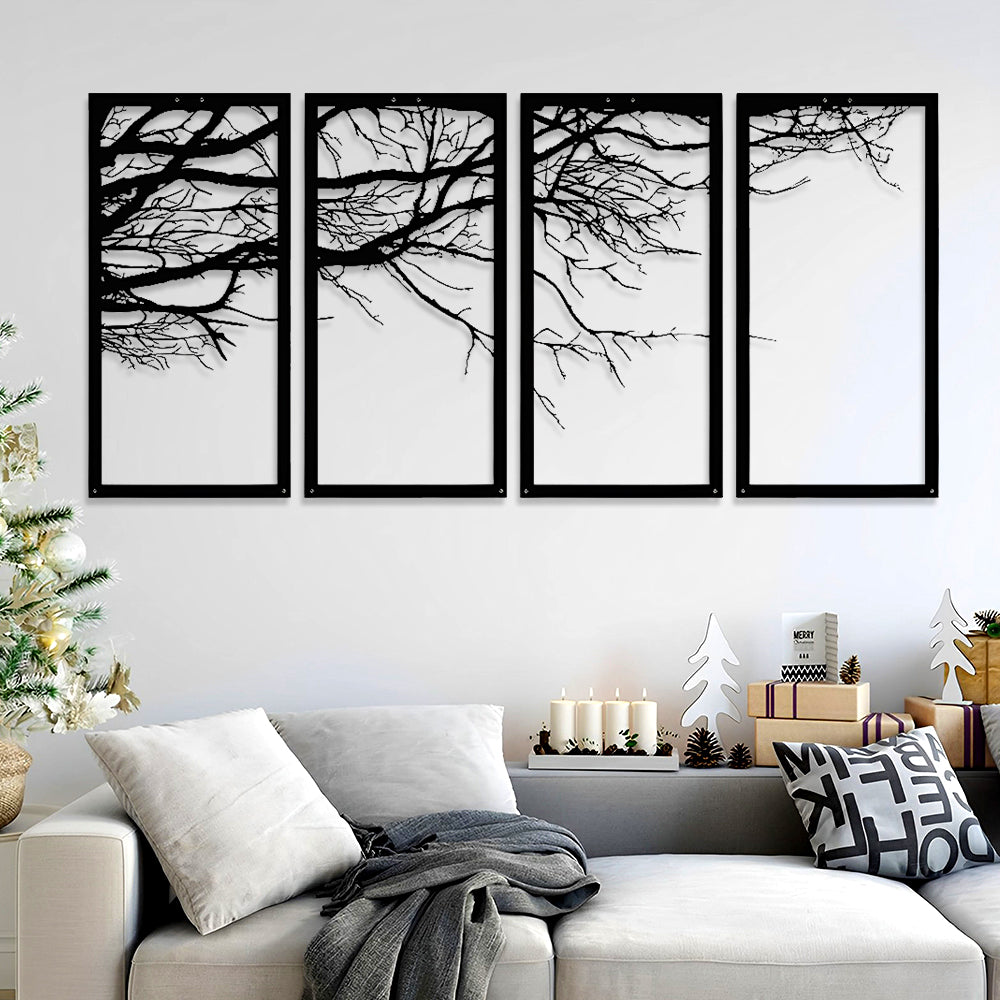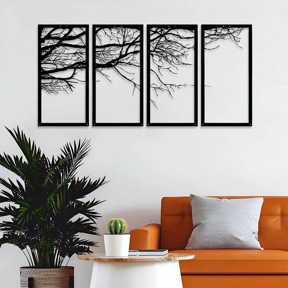 4 Pièces Arbre de Conception Artistique Art Mural en Métal