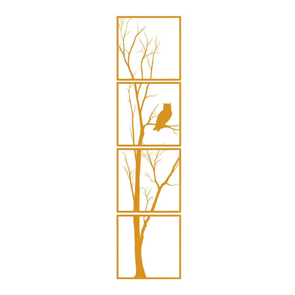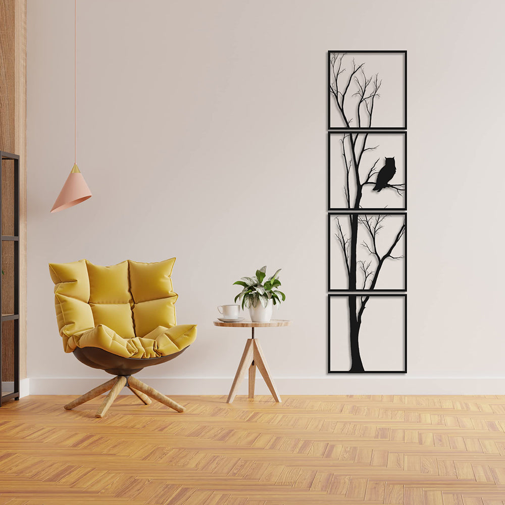4 Pièces Hibou Arbre de la Vie Art Mural en Métal