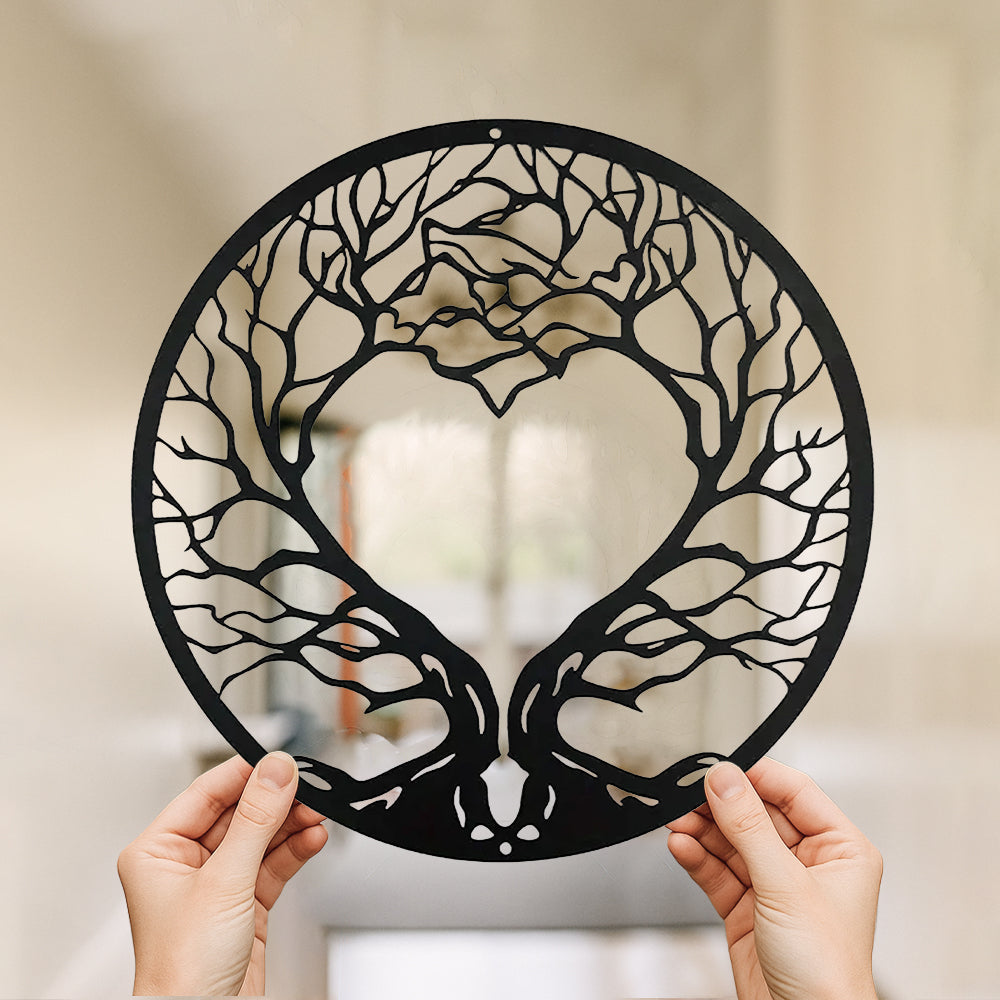 Arbre de la Vie en Forme de Cœur Art Mural en Métal