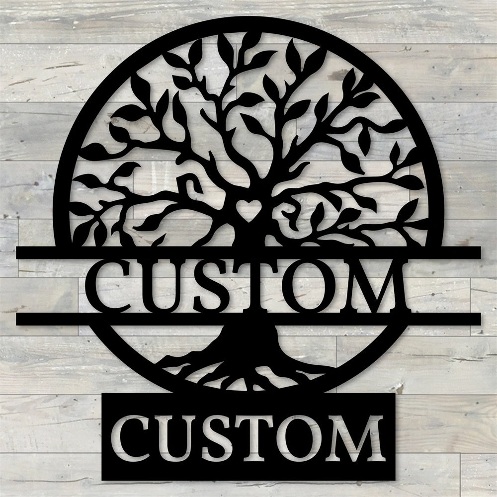 Arbre de la Vie Personnalisé Plaque d'Adresse Art Mural en Métal
