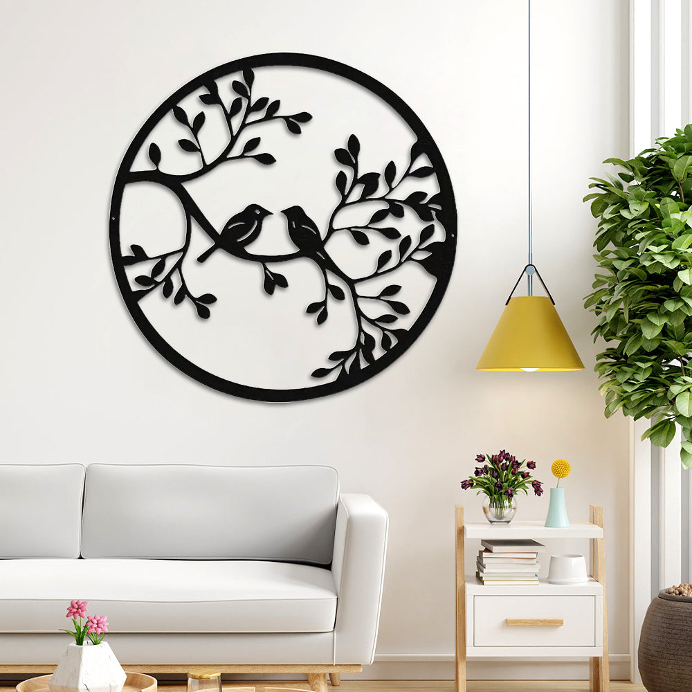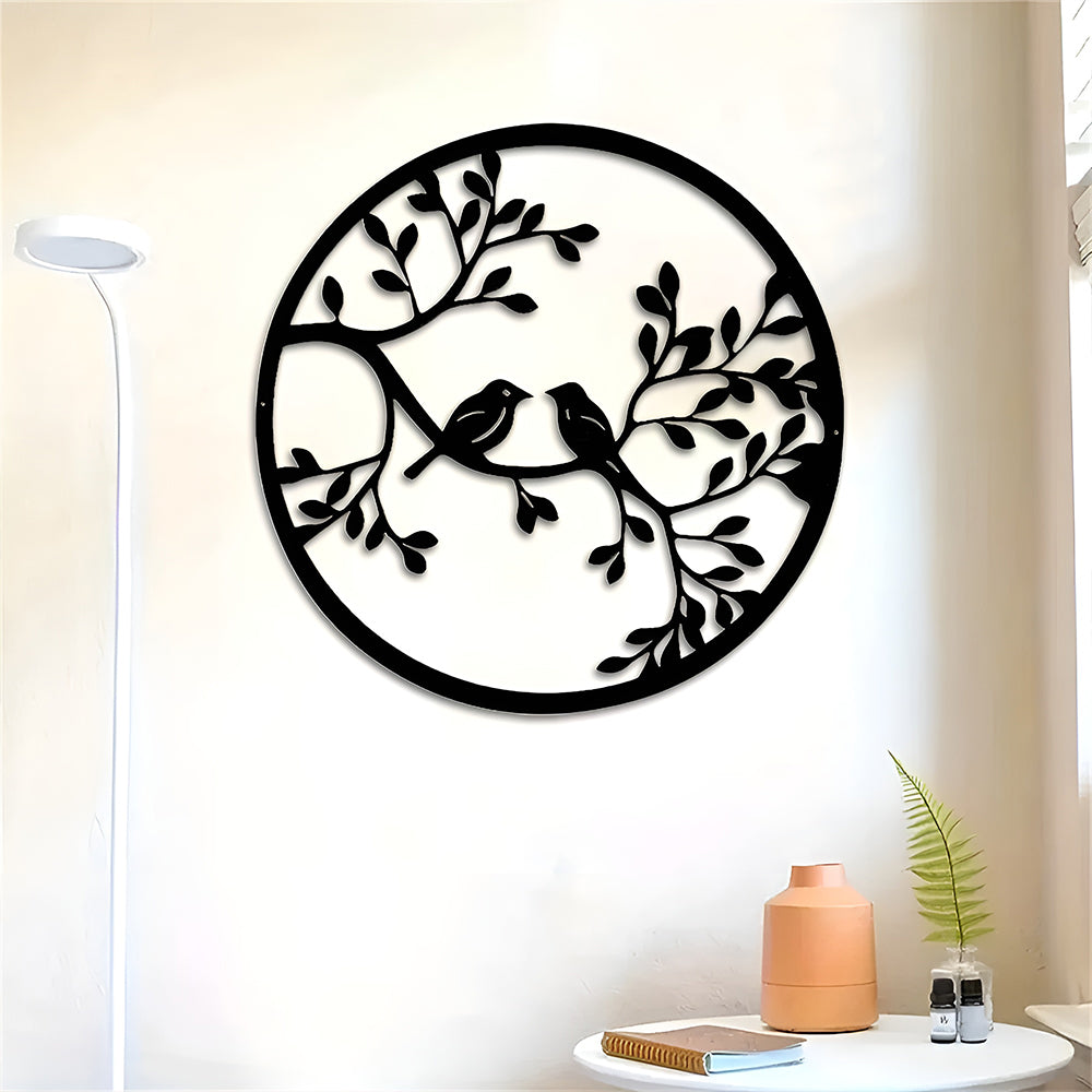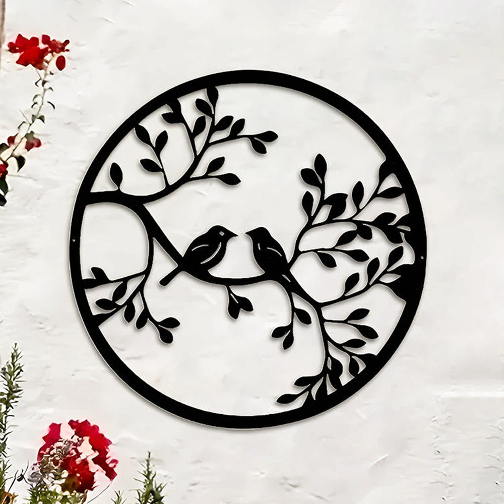 Art d'Oiseau en Métal Décor Mur Sculpture Murale Ronde d'Oiseau en Métal
