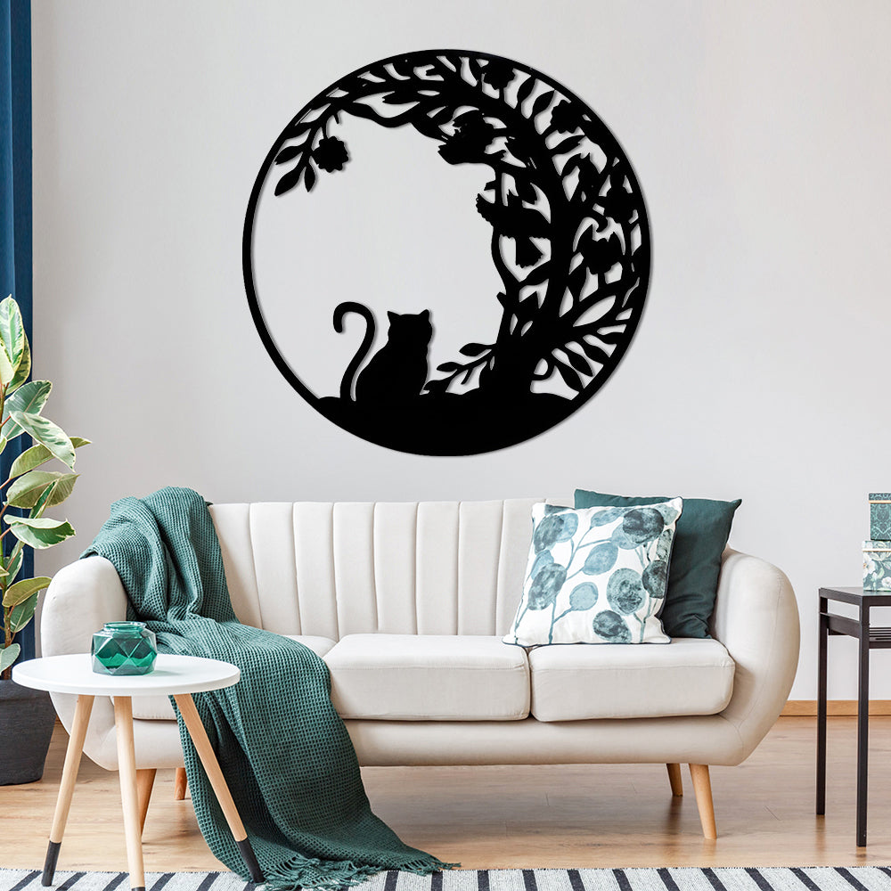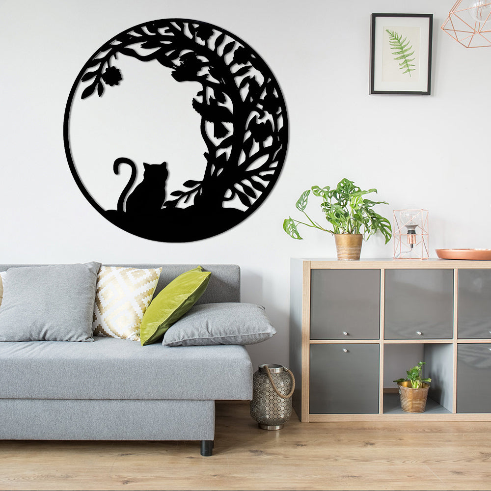 Chat et Arbre de la Vie Métal Décoratif Mural