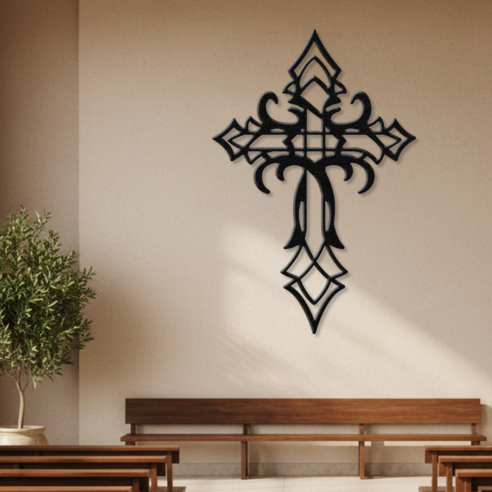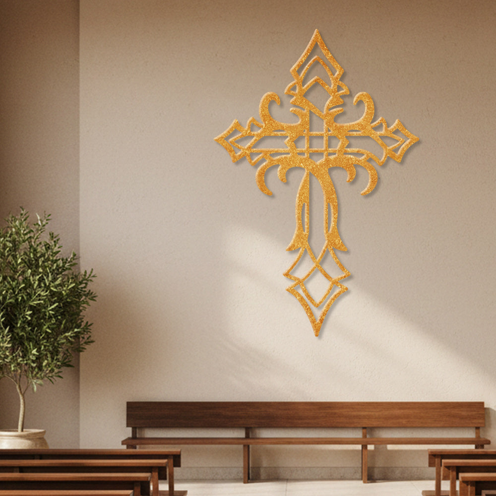 Croix Gothique Décorative Métal Décoratif Mural – Décor Maison Chrétienne