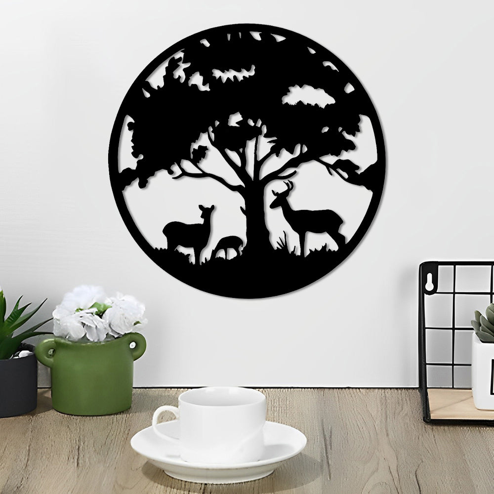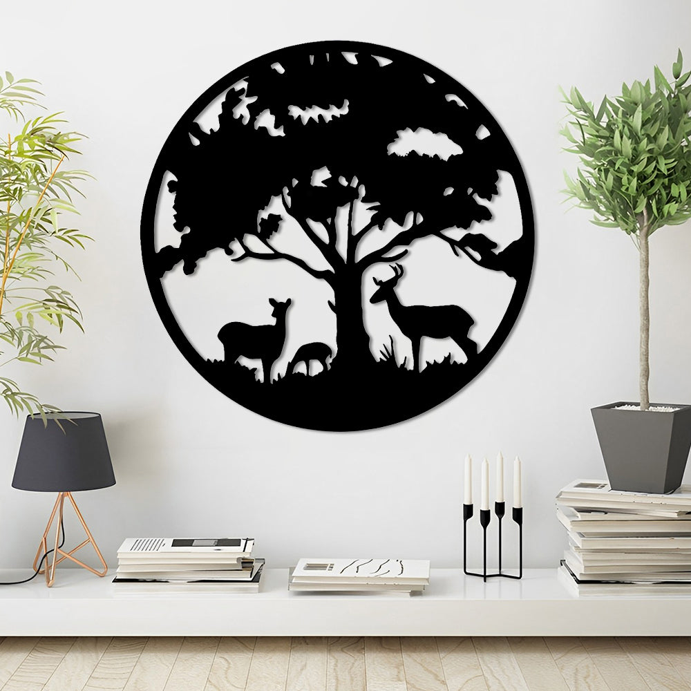 Décoration de Cerf en Métal Arbre de la Vie Métal Décoratif Mural