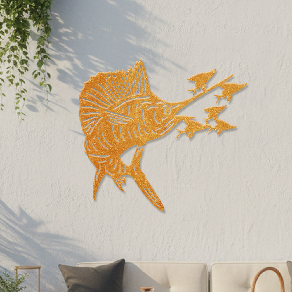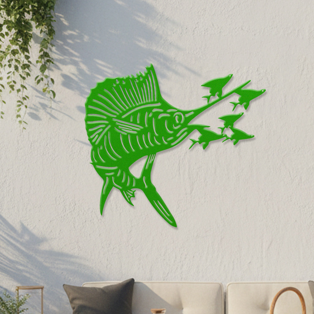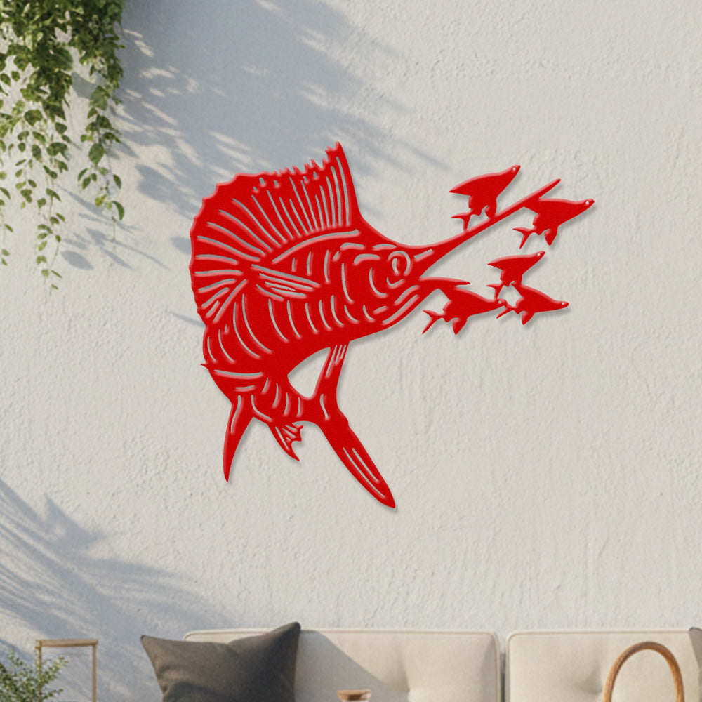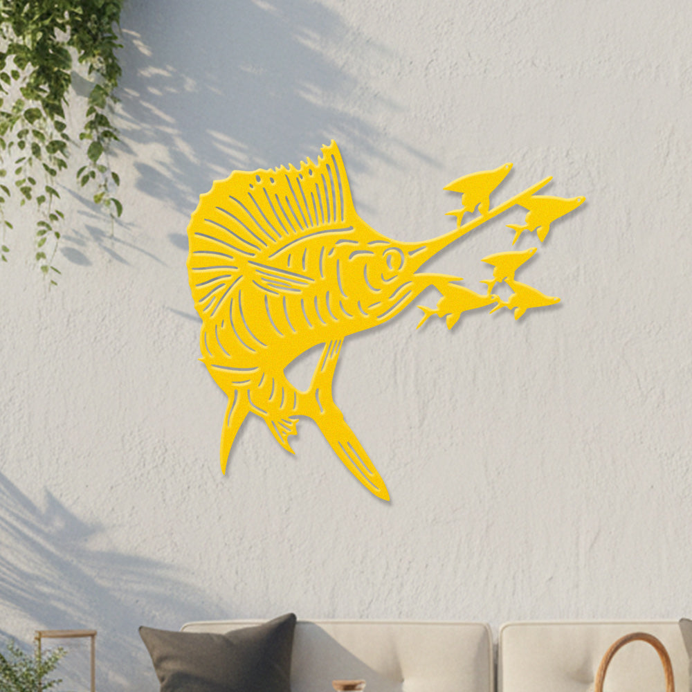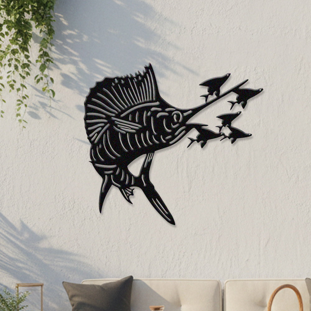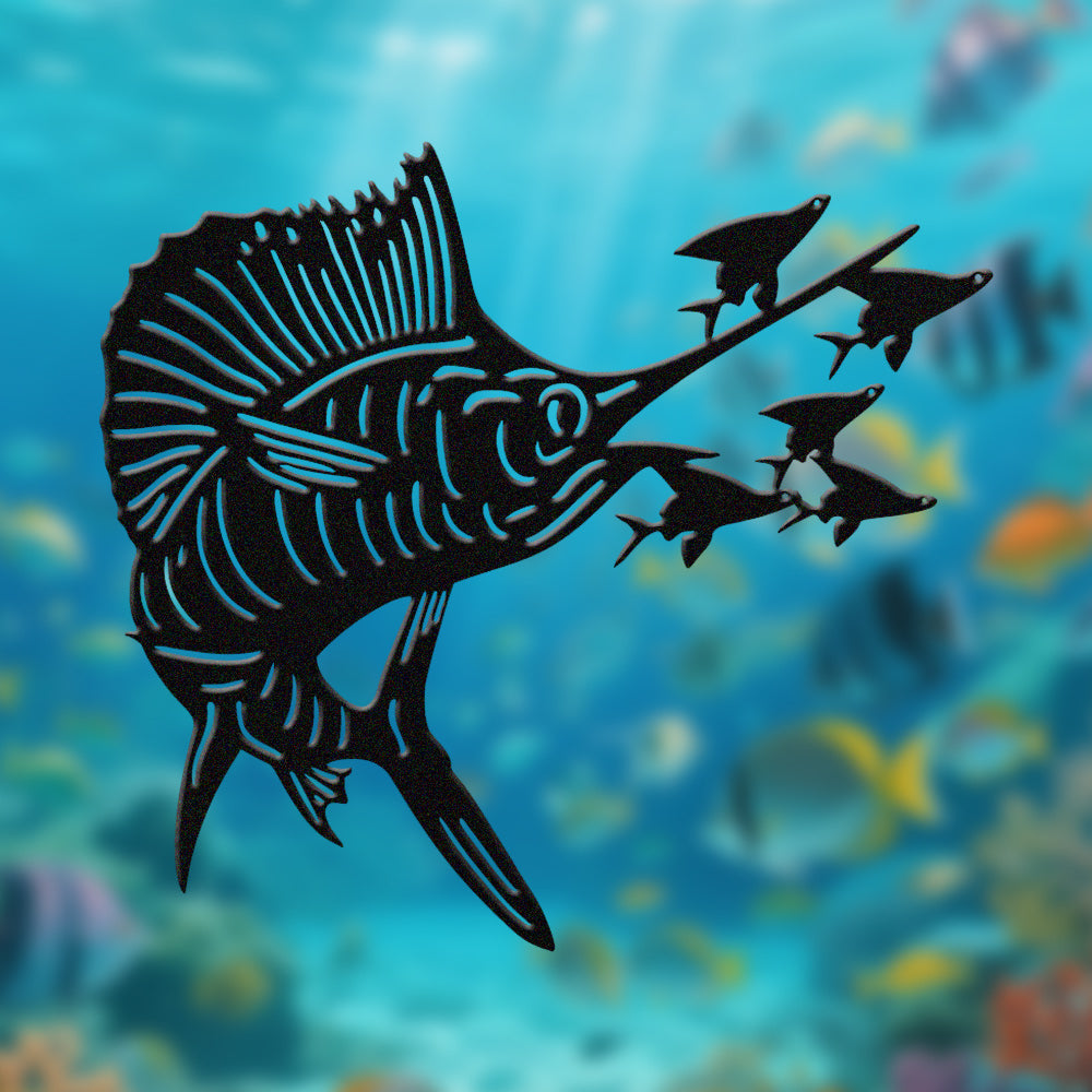 Pêche à l'Espadon Voilier Métal Décoratif Mural – Décor Métal en Fer Prédateur Océan