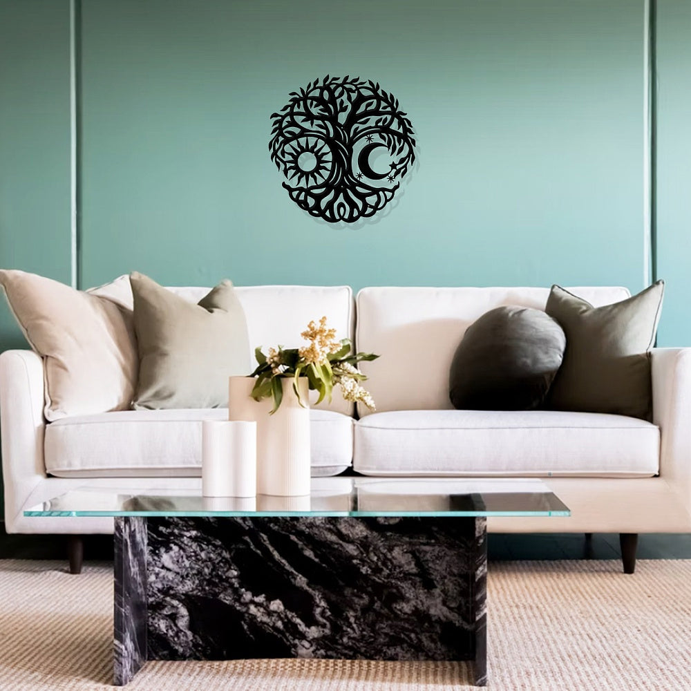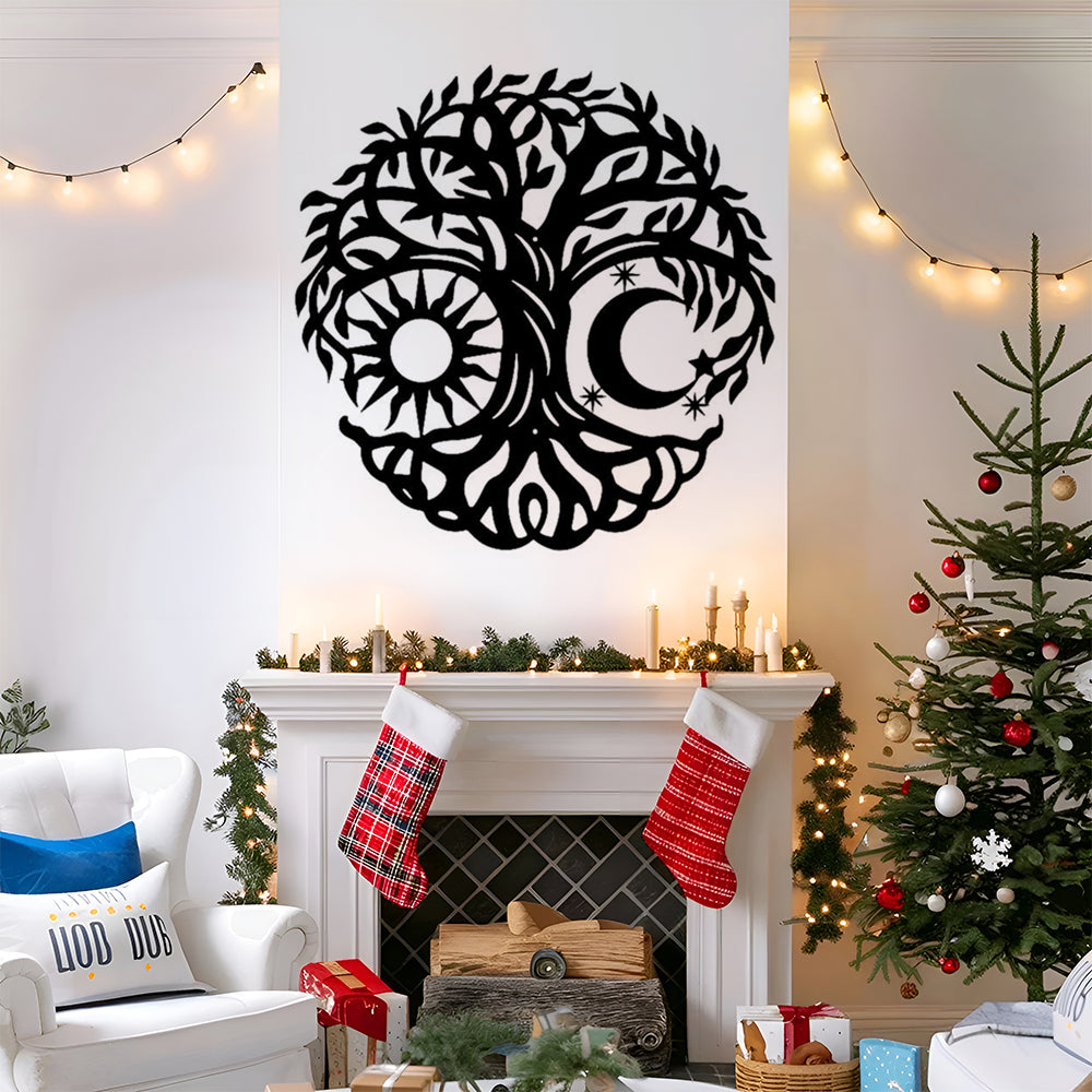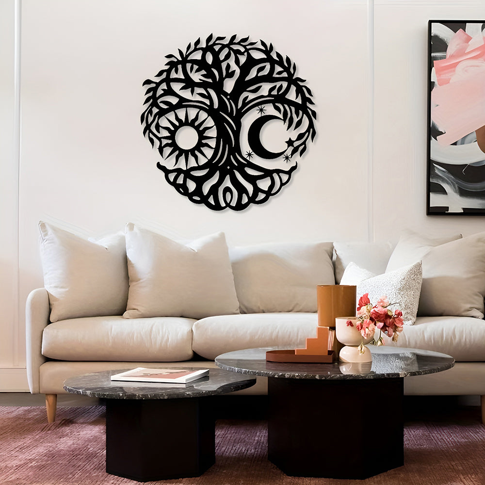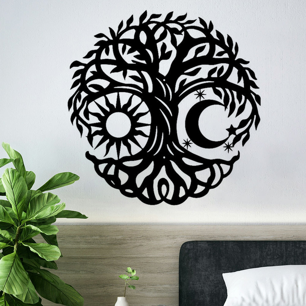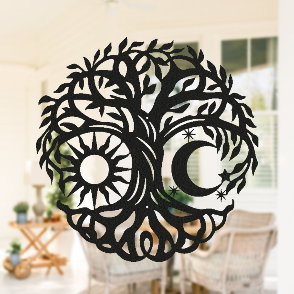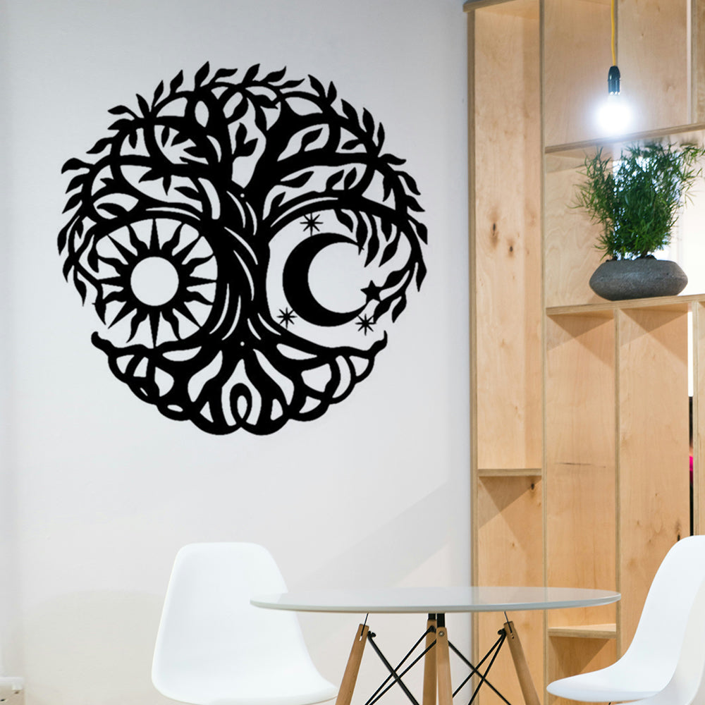 Soleil et Lune Arbre de la Vie Métal Décoratif Mural