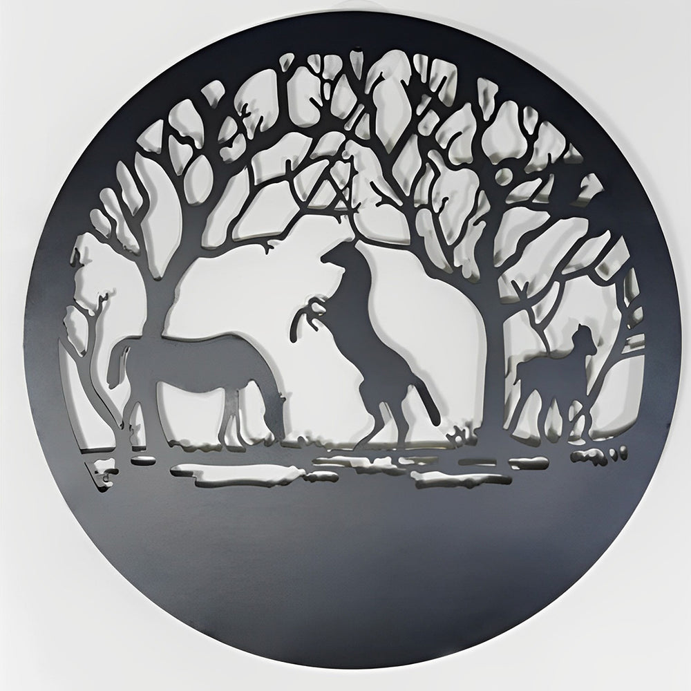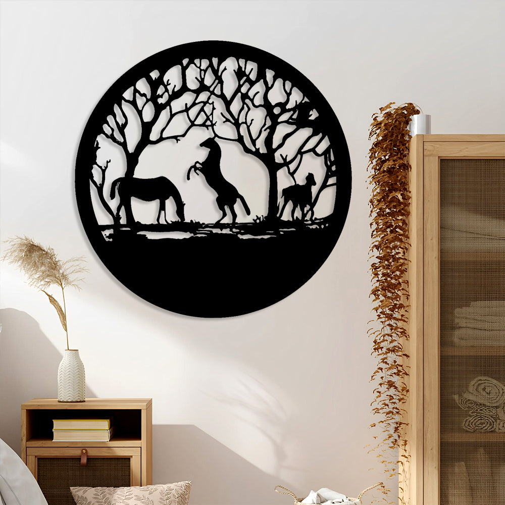 Trois Chevaux Arbre de la Vie Art Mural en Métal