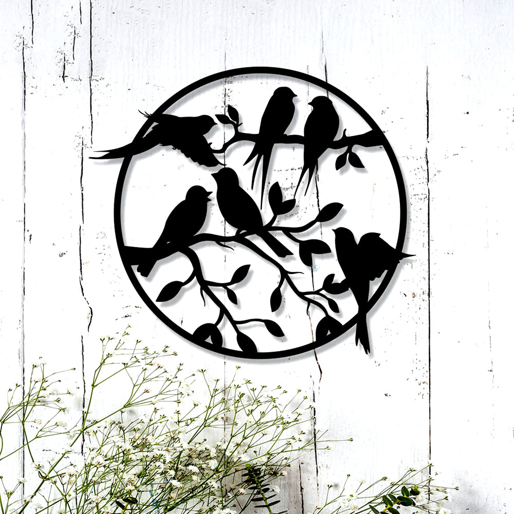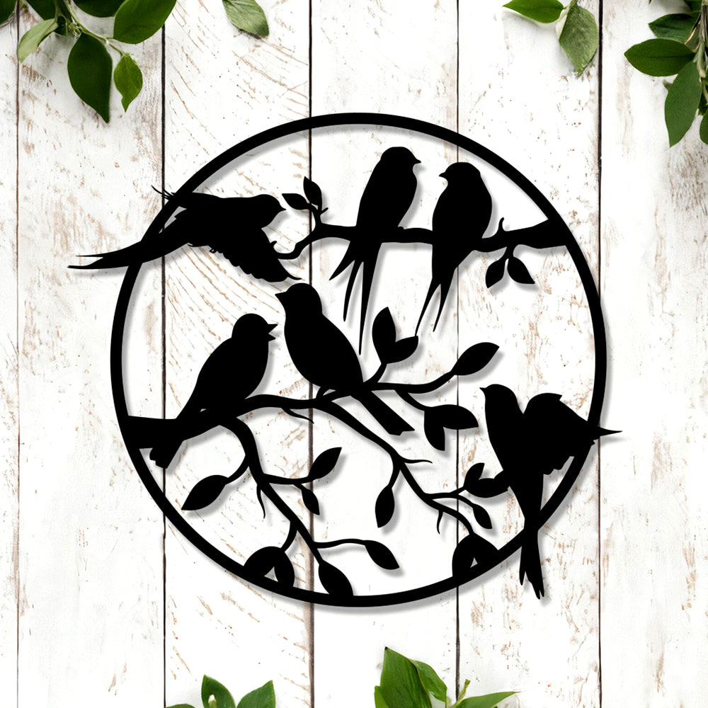 Vol d'Oiseaux sur Branche Plaque de Jardin Arbre de la Vie Métal Décoratif Mural