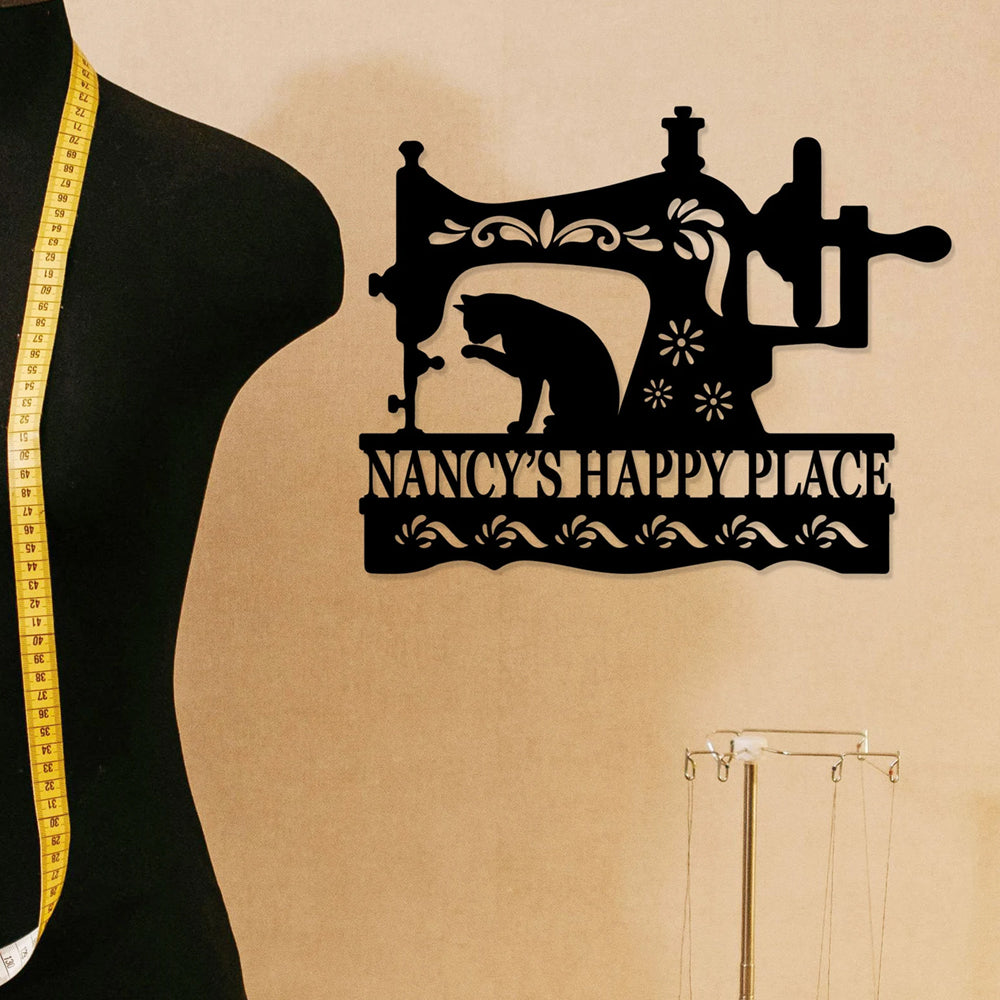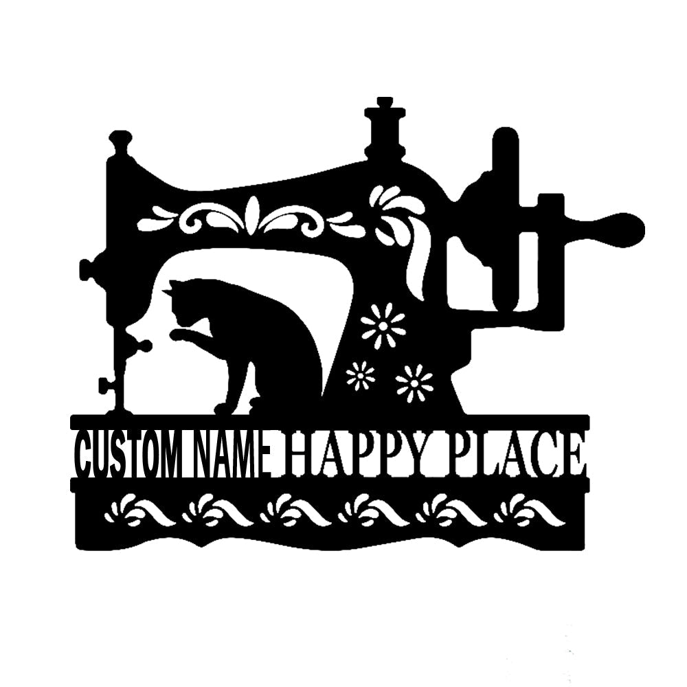 Machine à Coudre avec Chat Plaque Personnalisée en Métal Décoratif Mural