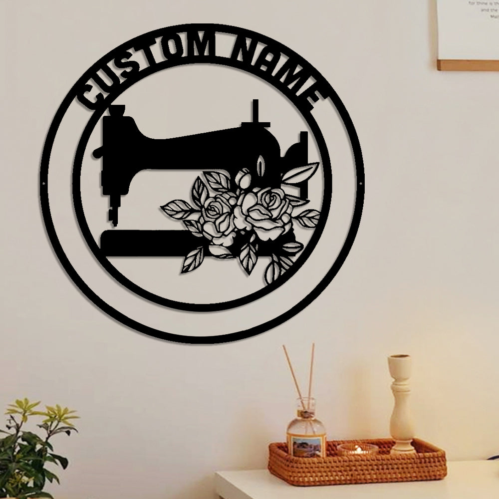 Machine à Coudre Florale Plaque Personnalisée en Métal Décoratif Mural