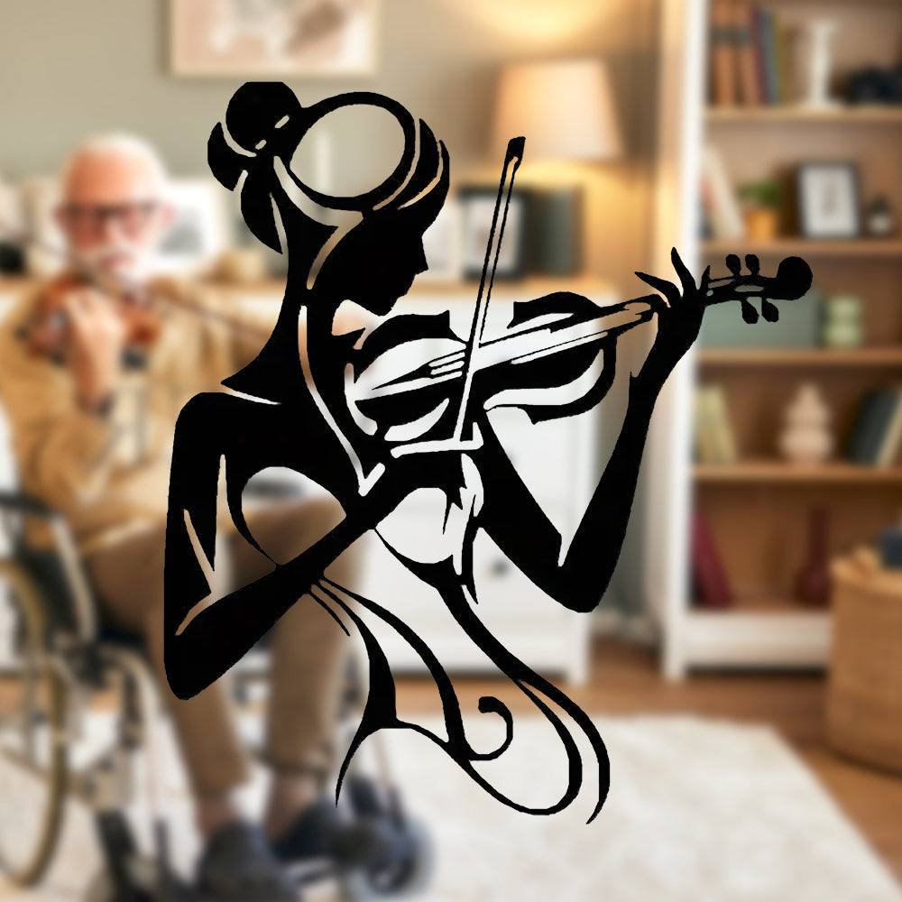 Fille Violoniste Plaque en Métal Décoratif Mural