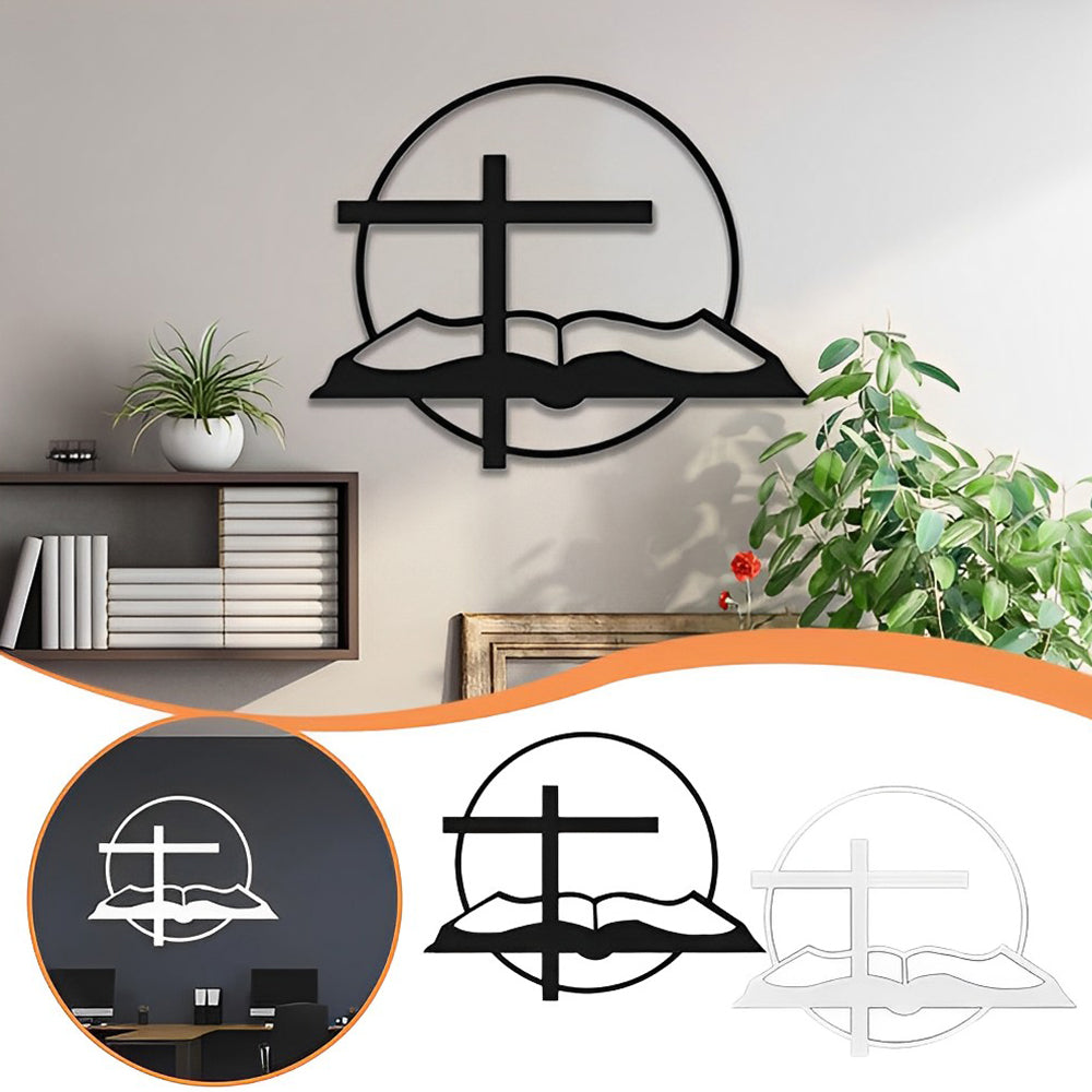 Croix de Pâques et Bible Plaque en Métal Décoratif Mural