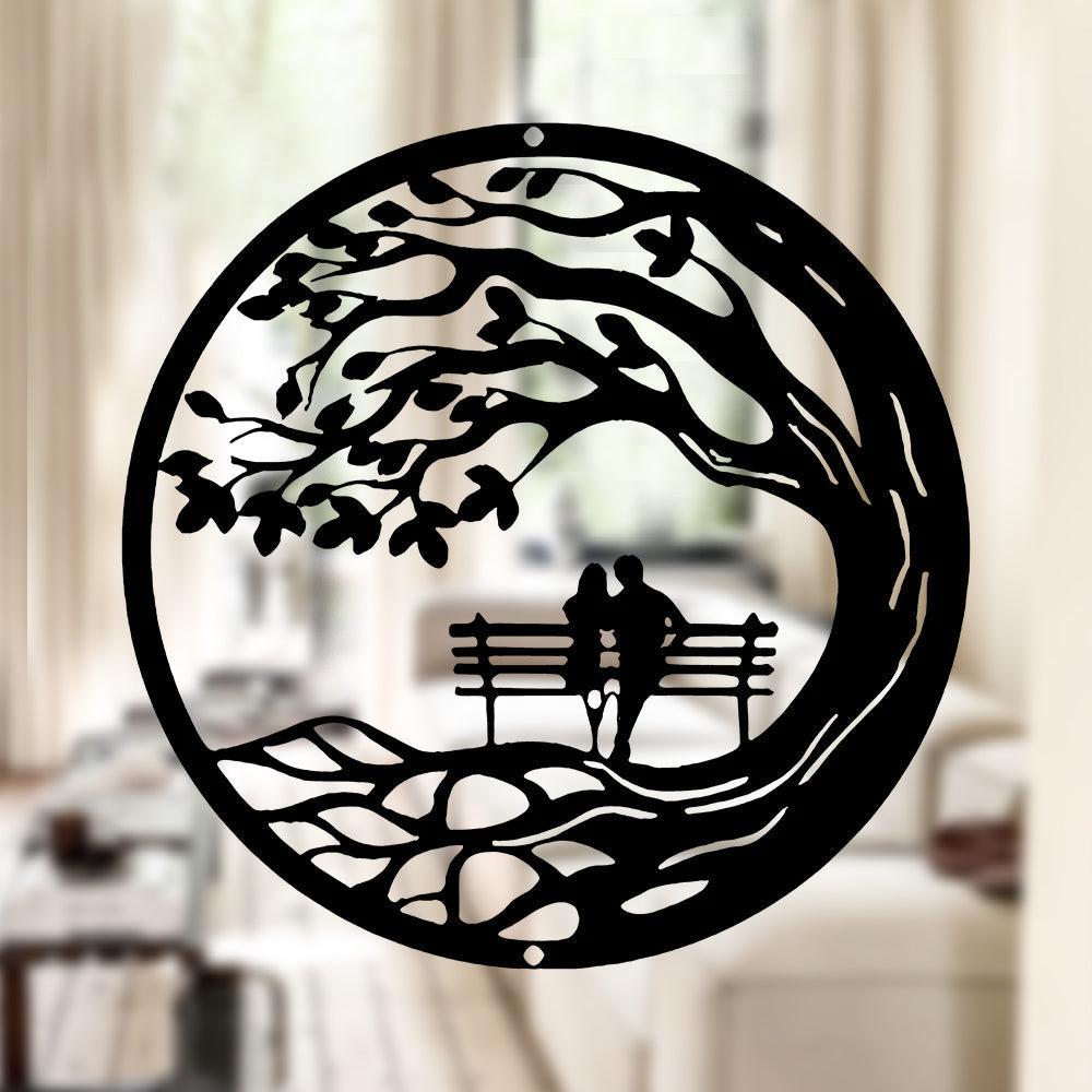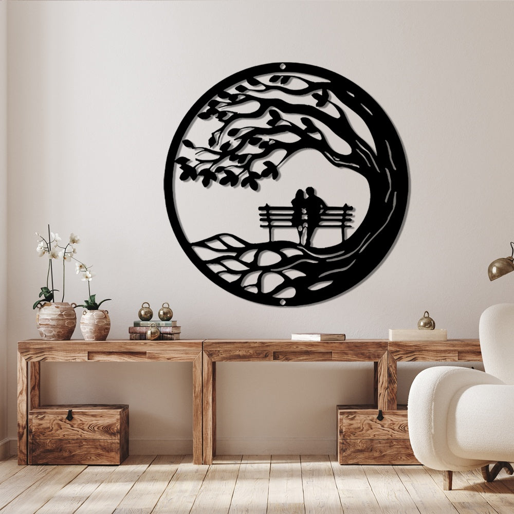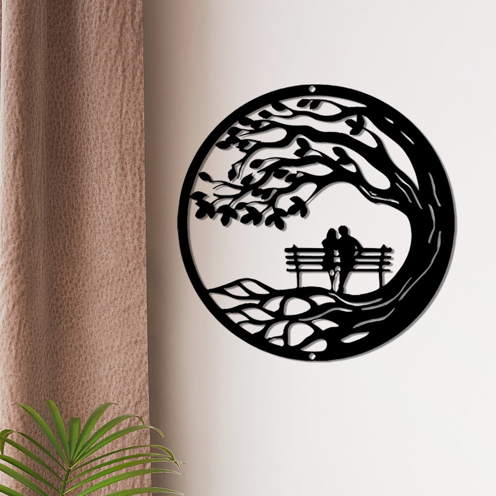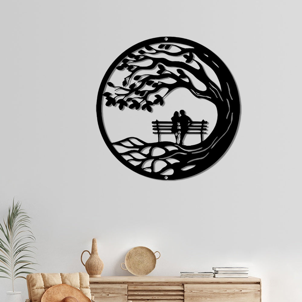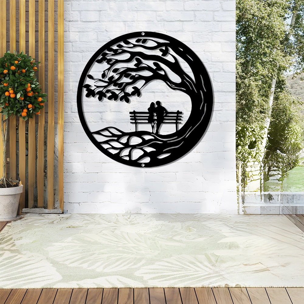 Couple Sous l'Arbre de la Vie Métal Décoratif Mural
