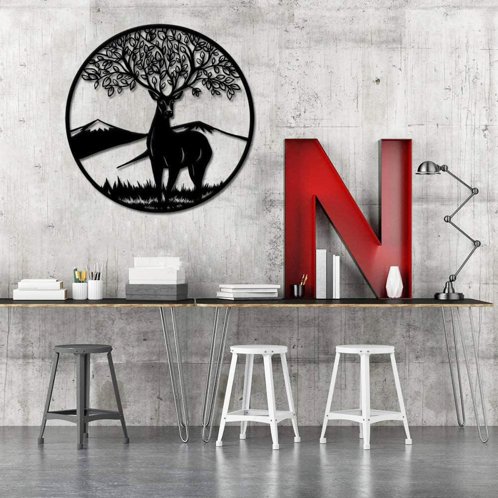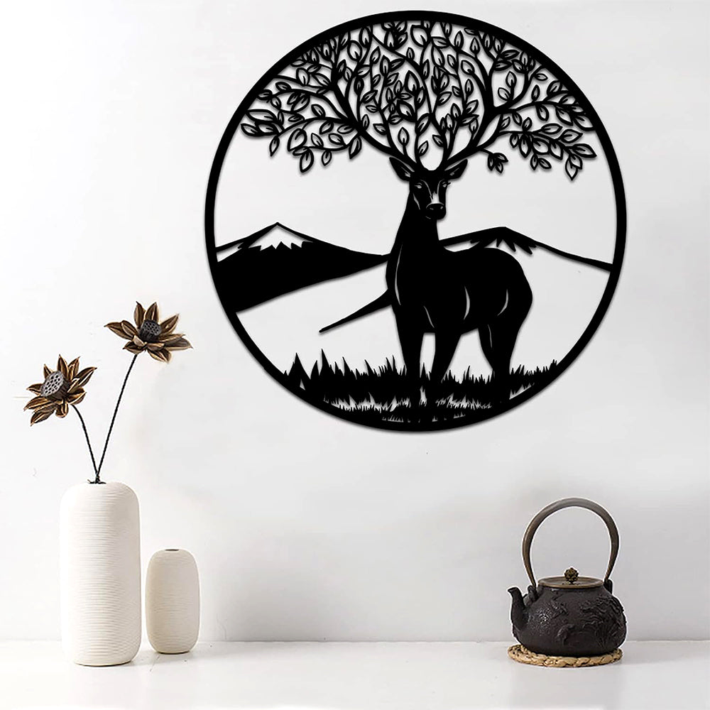 Arbre Cerf Créatif Forêt Métal Décoratif Mural