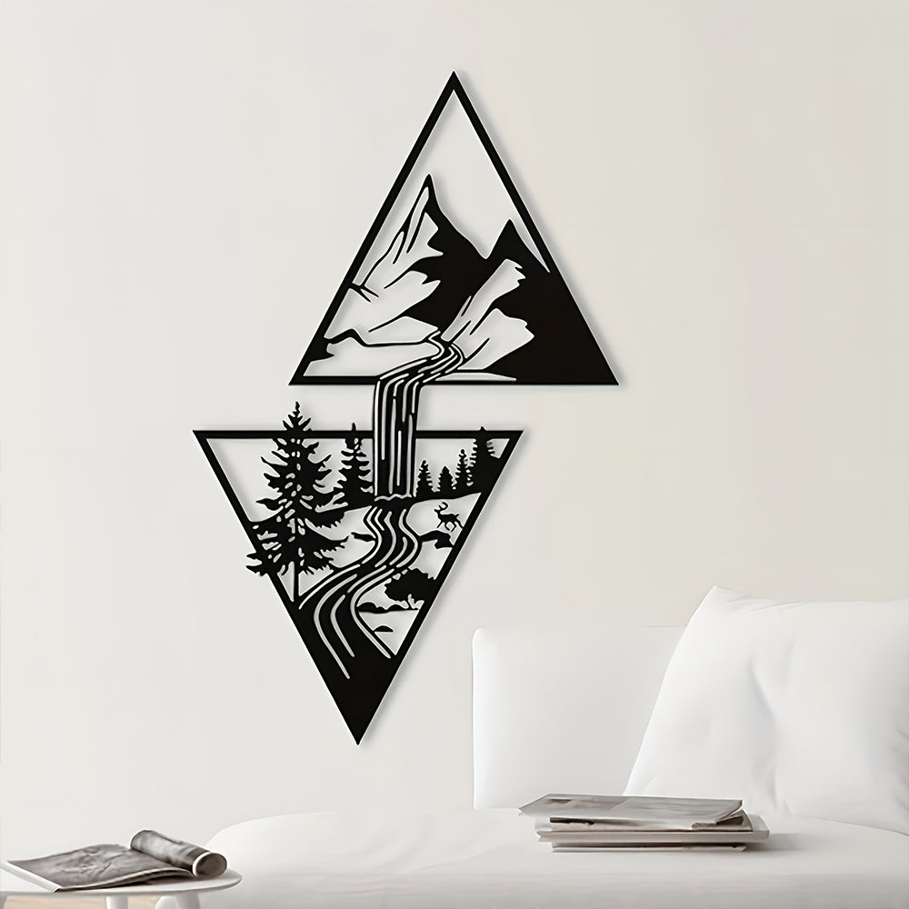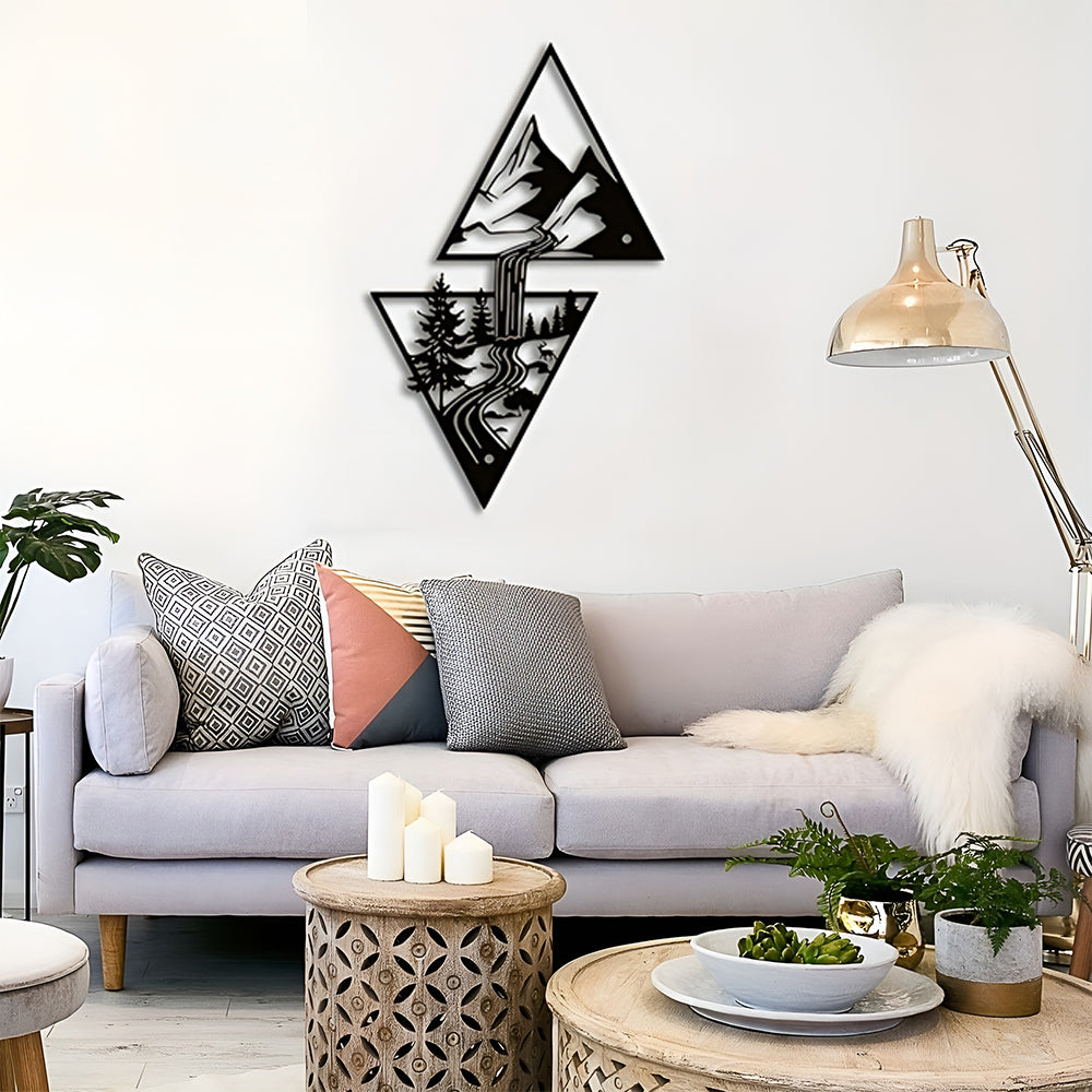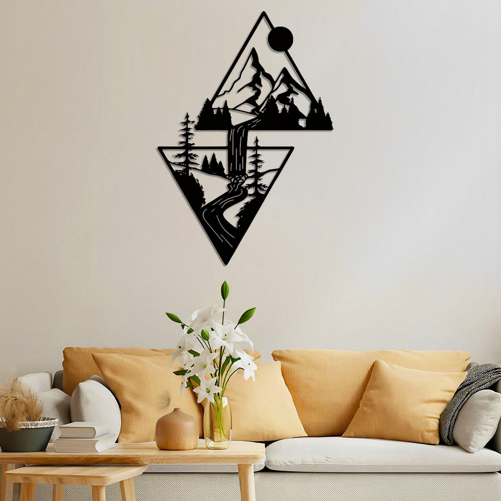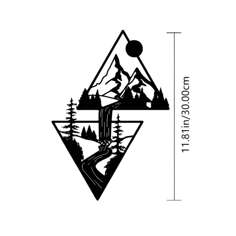 Montagne et Cascade Arbre de la Vie Métal Décoratif Mural