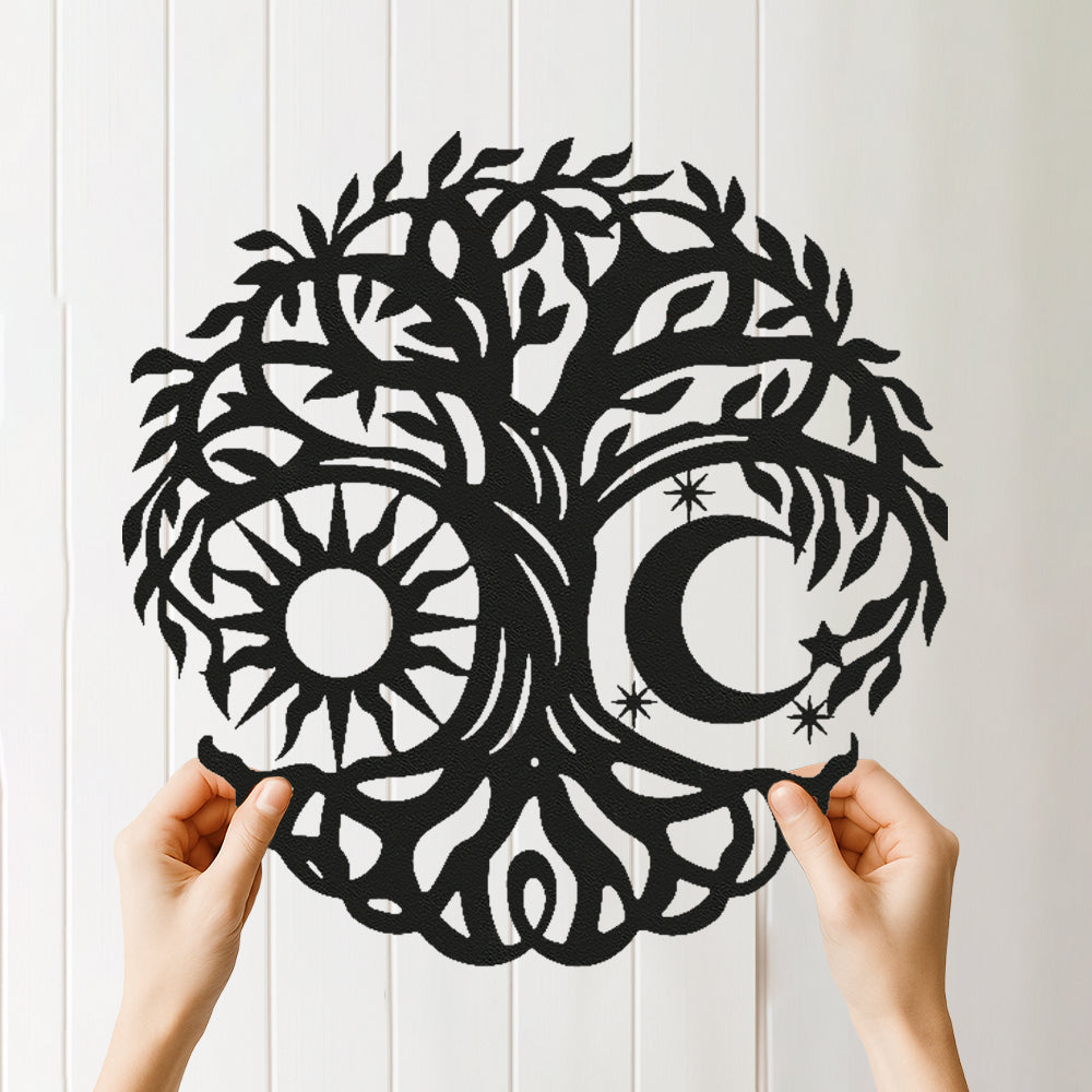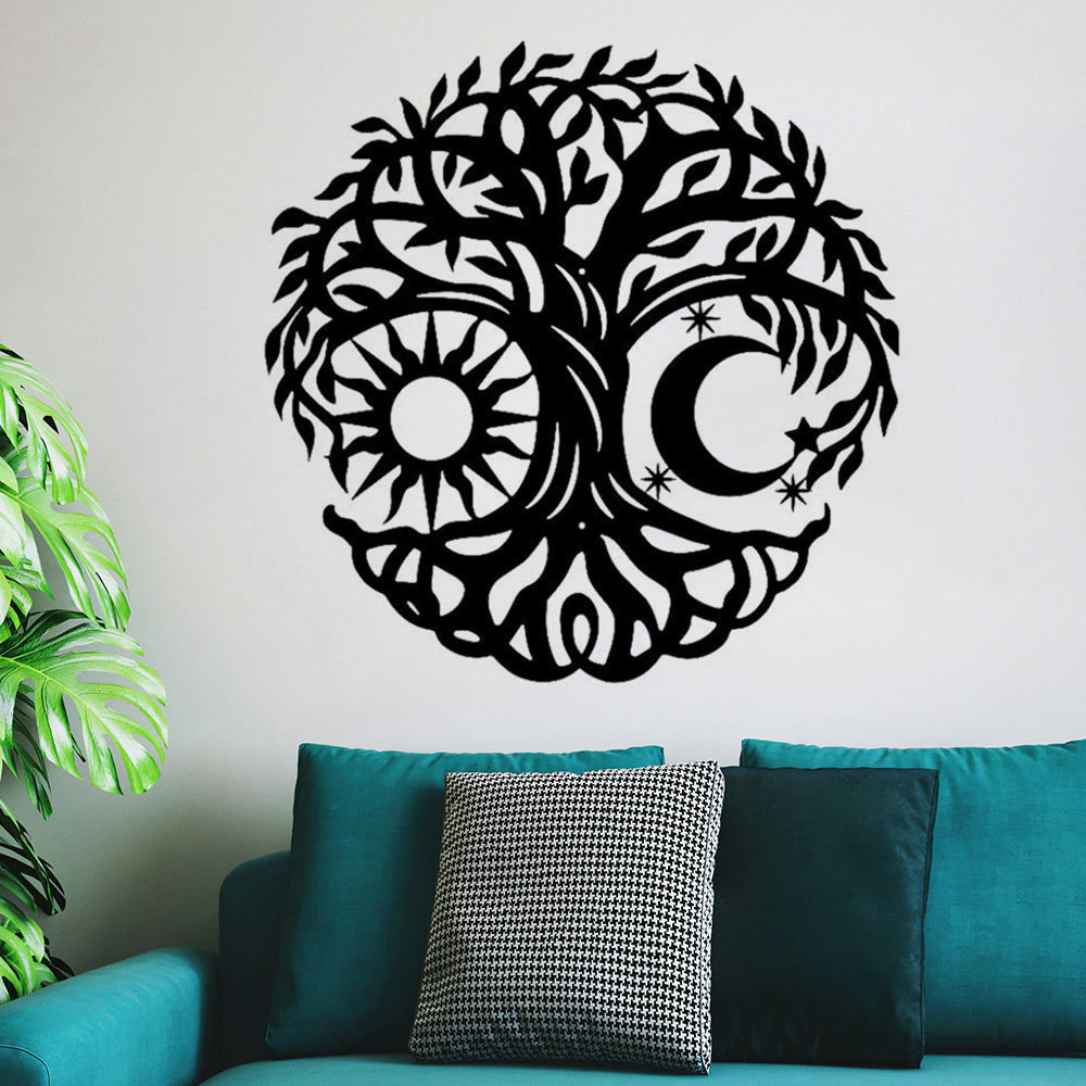 Soleil et Lune Arbre de la Vie Métal Décoratif Mural